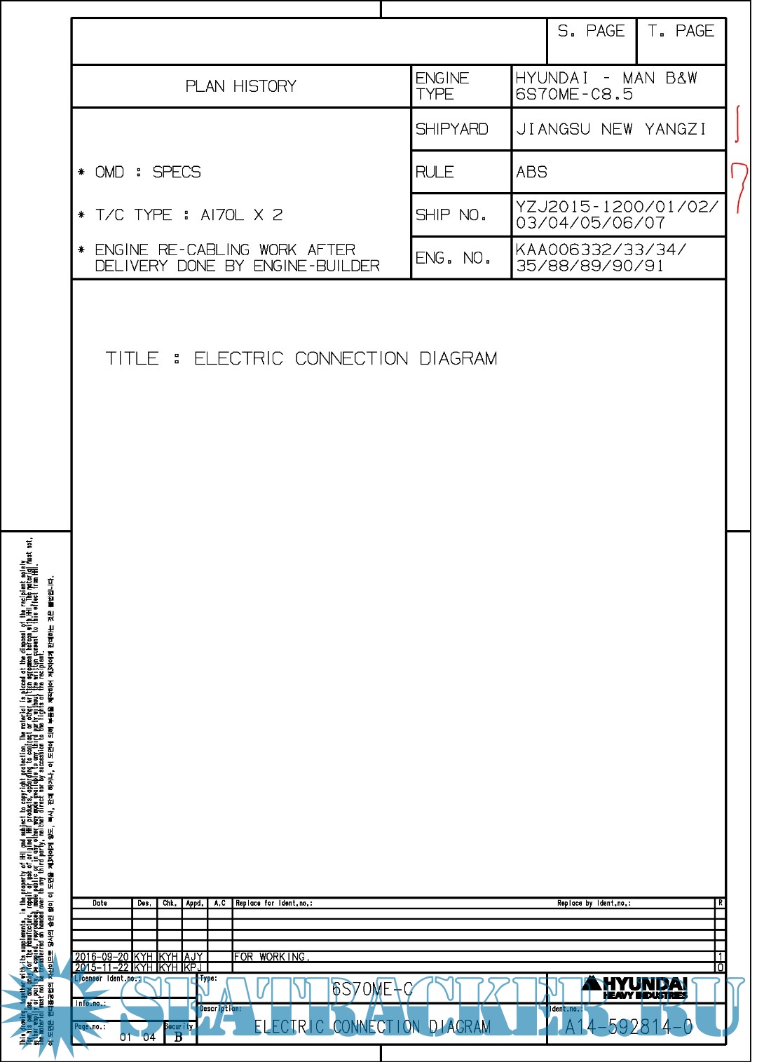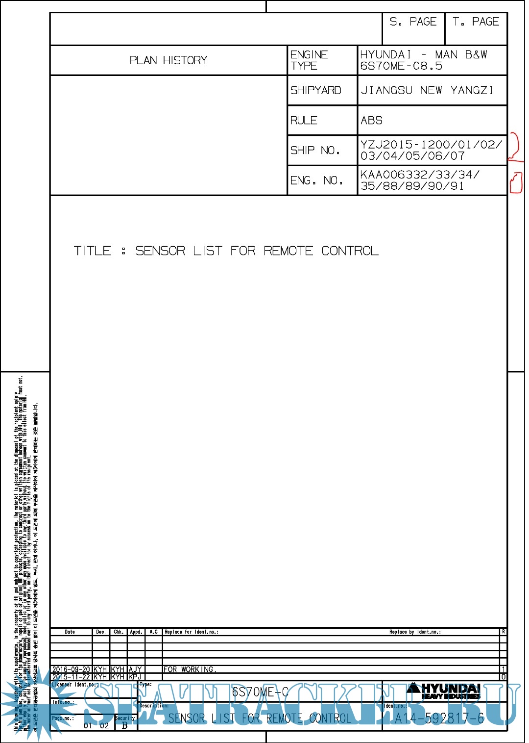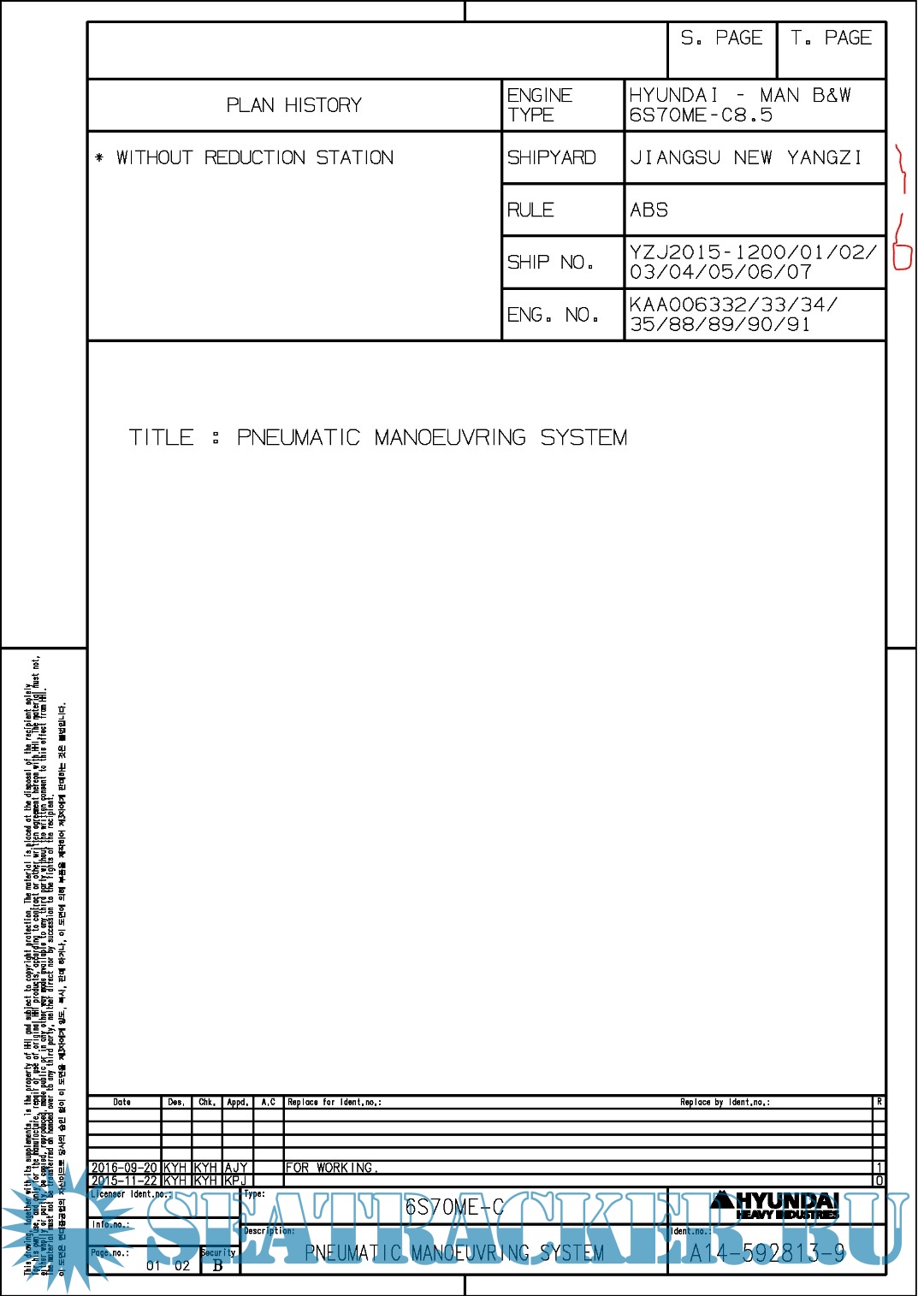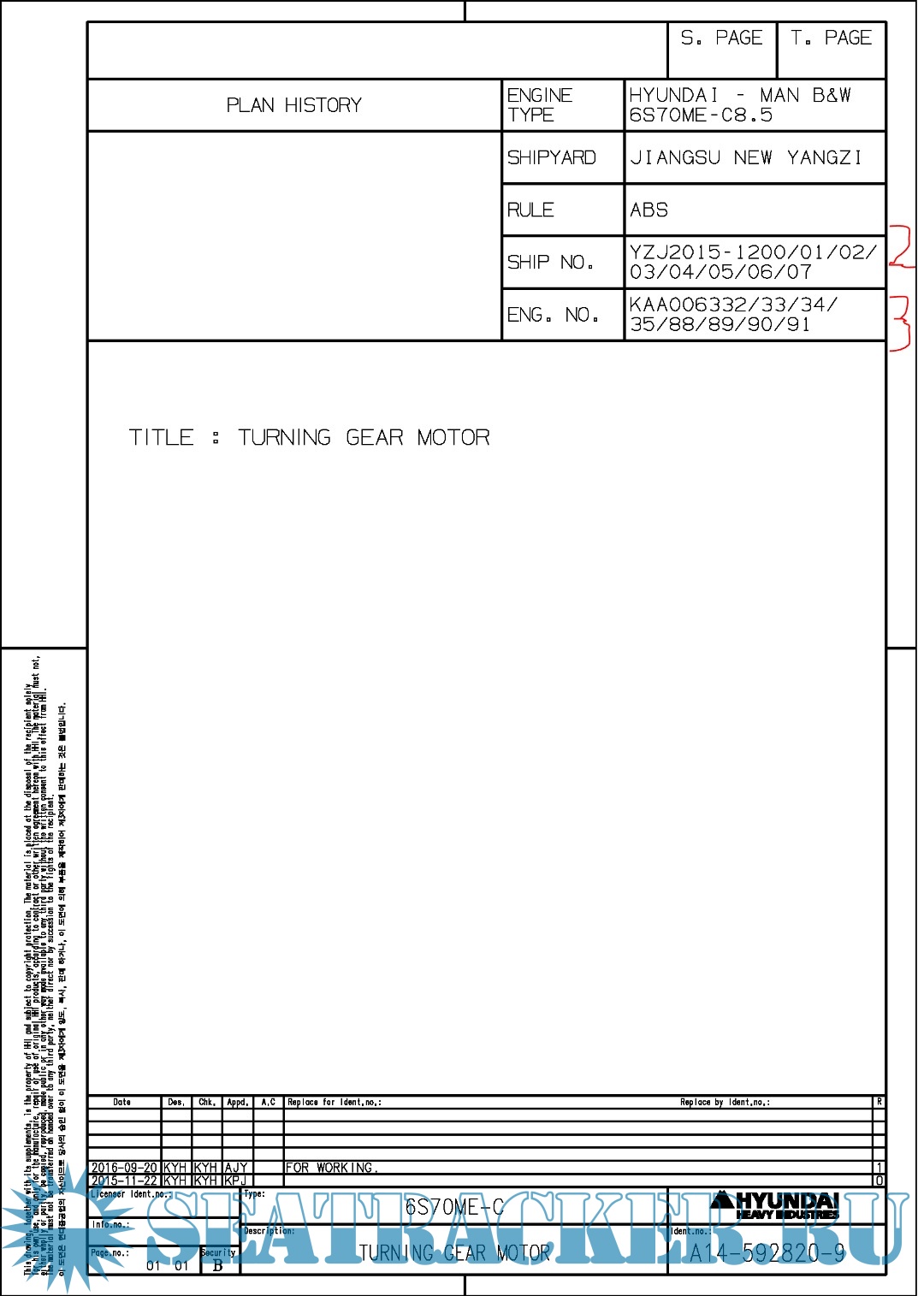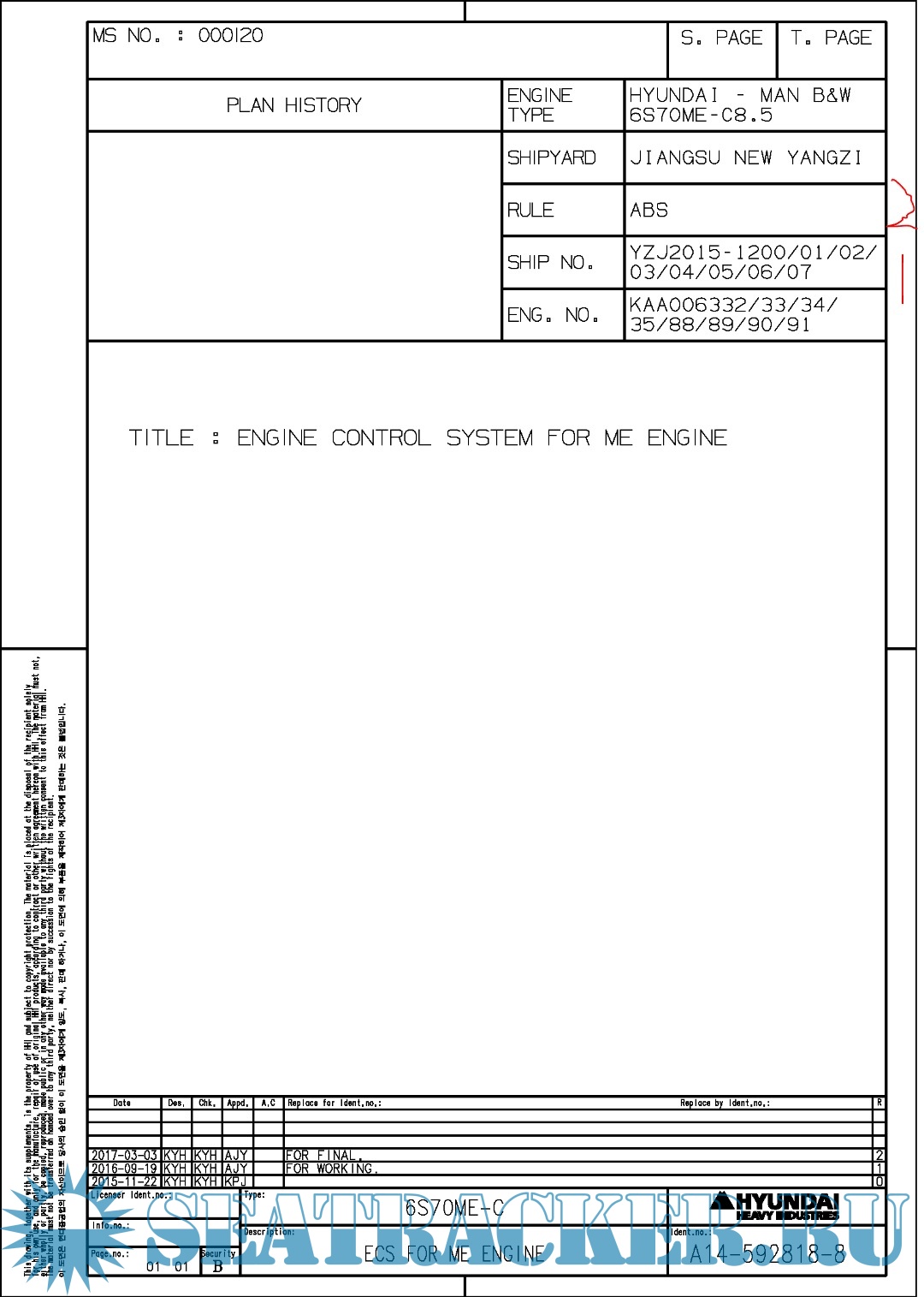 Hundai MAN B&W 6S70ME-C8.5 Final drawings for Main Engine