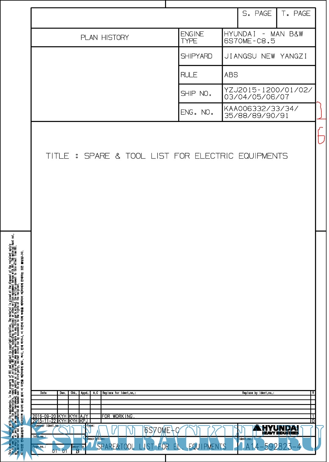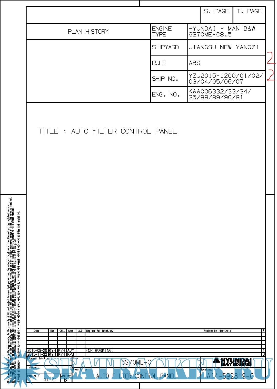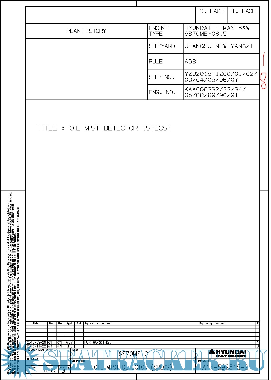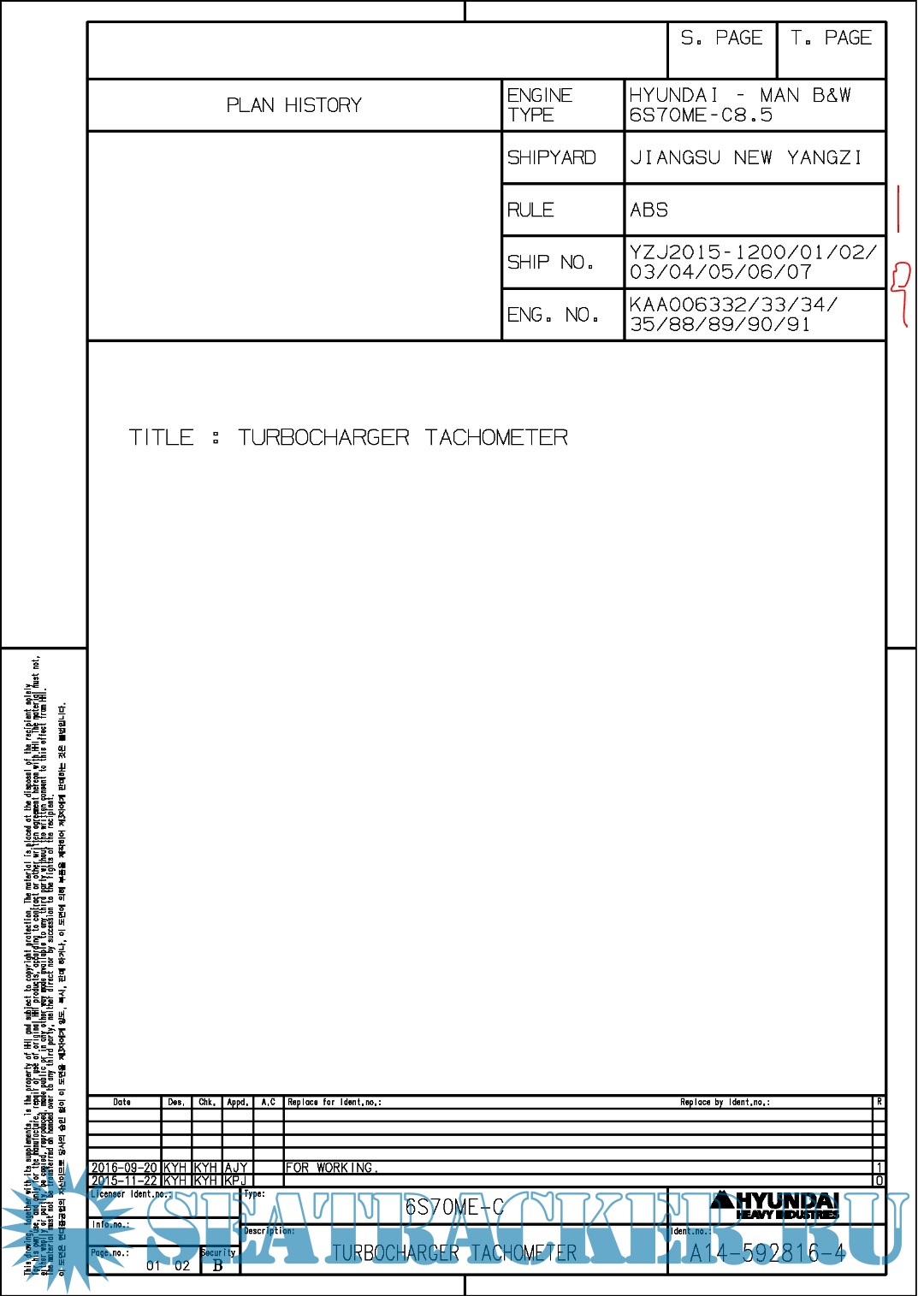 Hundai MAN B&W 6S70ME-C8.5 Final drawings for Main Engine