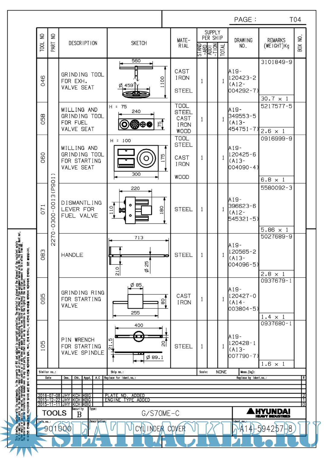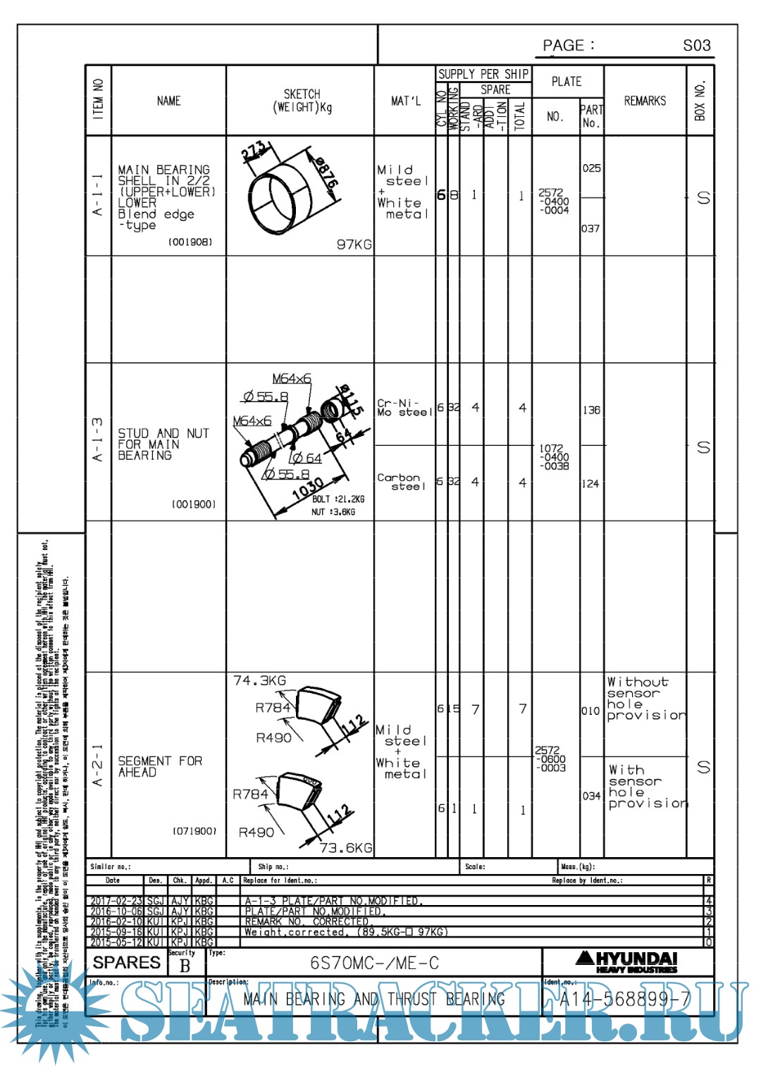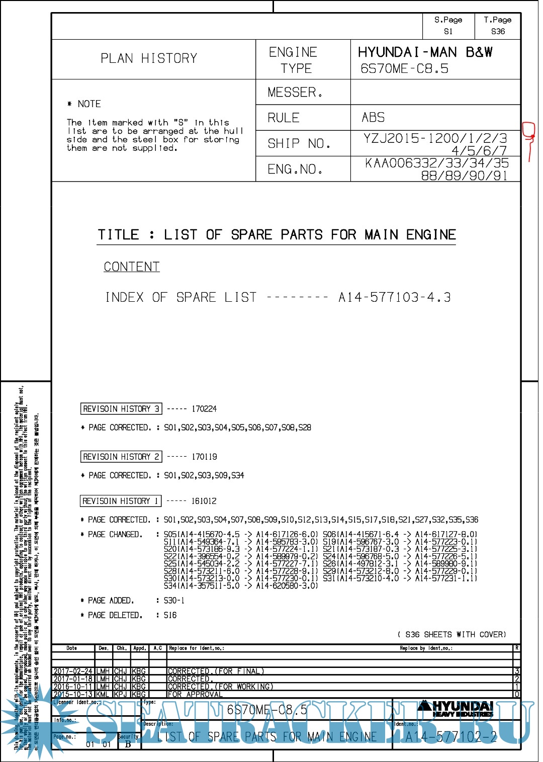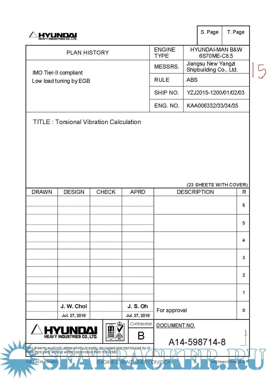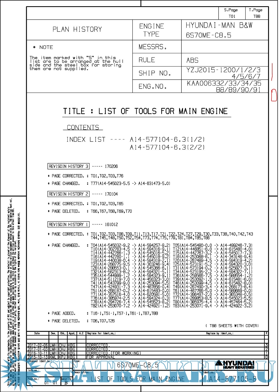 Hundai MAN B&W 6S70ME-C8.5 Final drawings for Main Engine