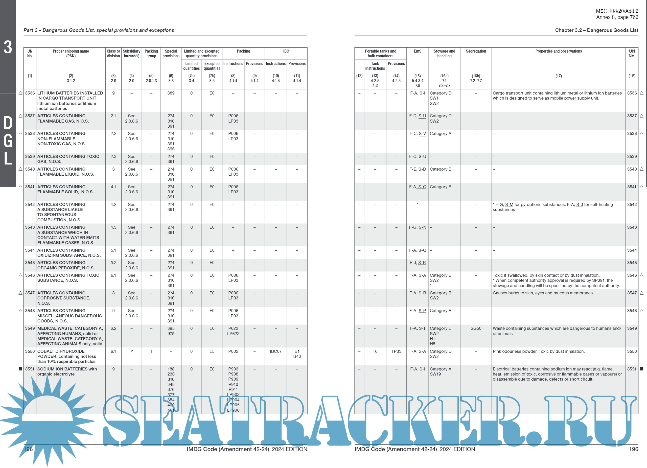 RESOLUTION MSC.556(108) (adopted on 23 May 2024) AMENDMENTS TO THE INTERNATIONAL MARITIME DANGEROUS GOODS (IMDG) CODE & AMENDMENTS TO THE INTERNATIONAL MARITIME DANGEROUS GOODS (IMDG) CODE AMENDMENT 42-24