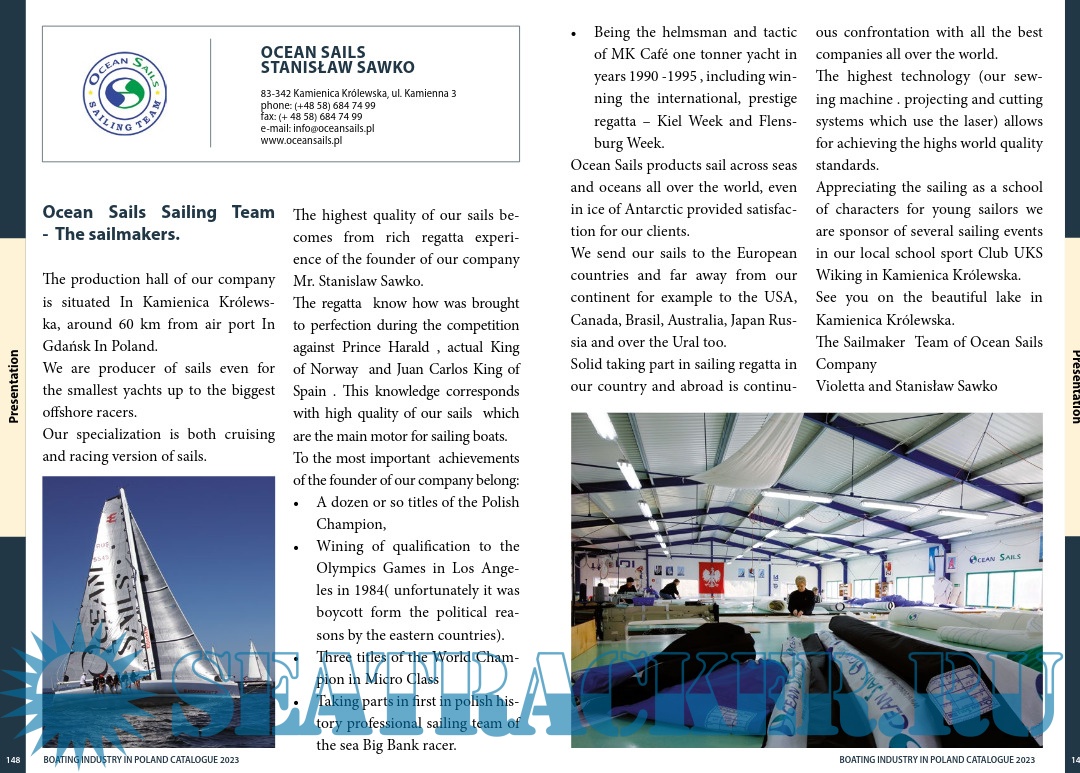Description: Polish marine industry is more than just yacht yards and includes a highly developed network of producers of components and parts, as well as suppliers of production and maintenance materials for boats and yachts. The superb quality of the services allowed many of our suppliers like Kotniz, Sail Service, Pacyfic and many others to establish lasting cooperation with leading producers of yachts all over the world.