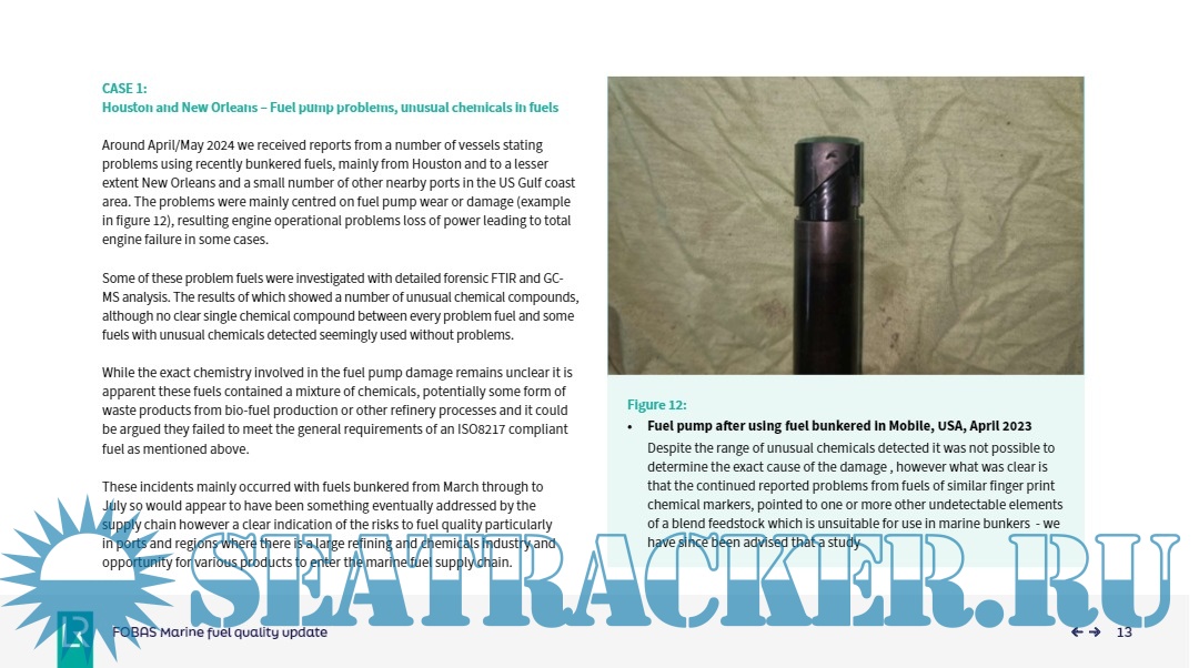 Description: We will take a look back at some of the key trends and areas of concern with marine fuels over 2024. Fuel as always is a vital consideration and expense for any ship operator and with fast changing regulations and fuel formulations there is more attention than ever needed to understand the quality and availability of marine fuels around the world and what to look out for. With the new ISO8217 standard recently released in June and the increasing use of bio-fuel blends along with EU and IMO