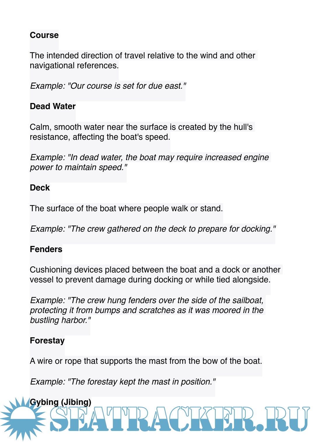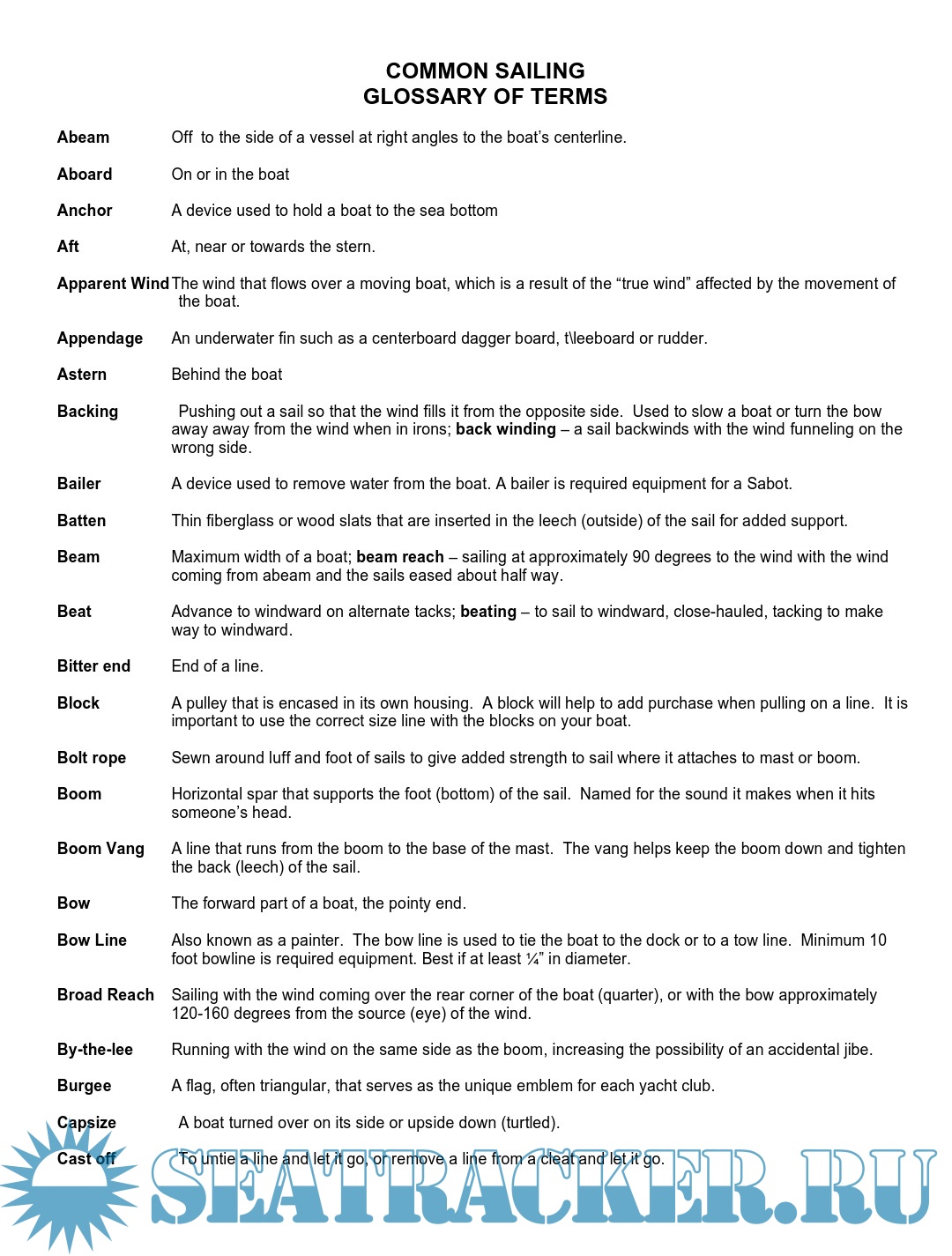 Description: Common sailing glossary of terms - small