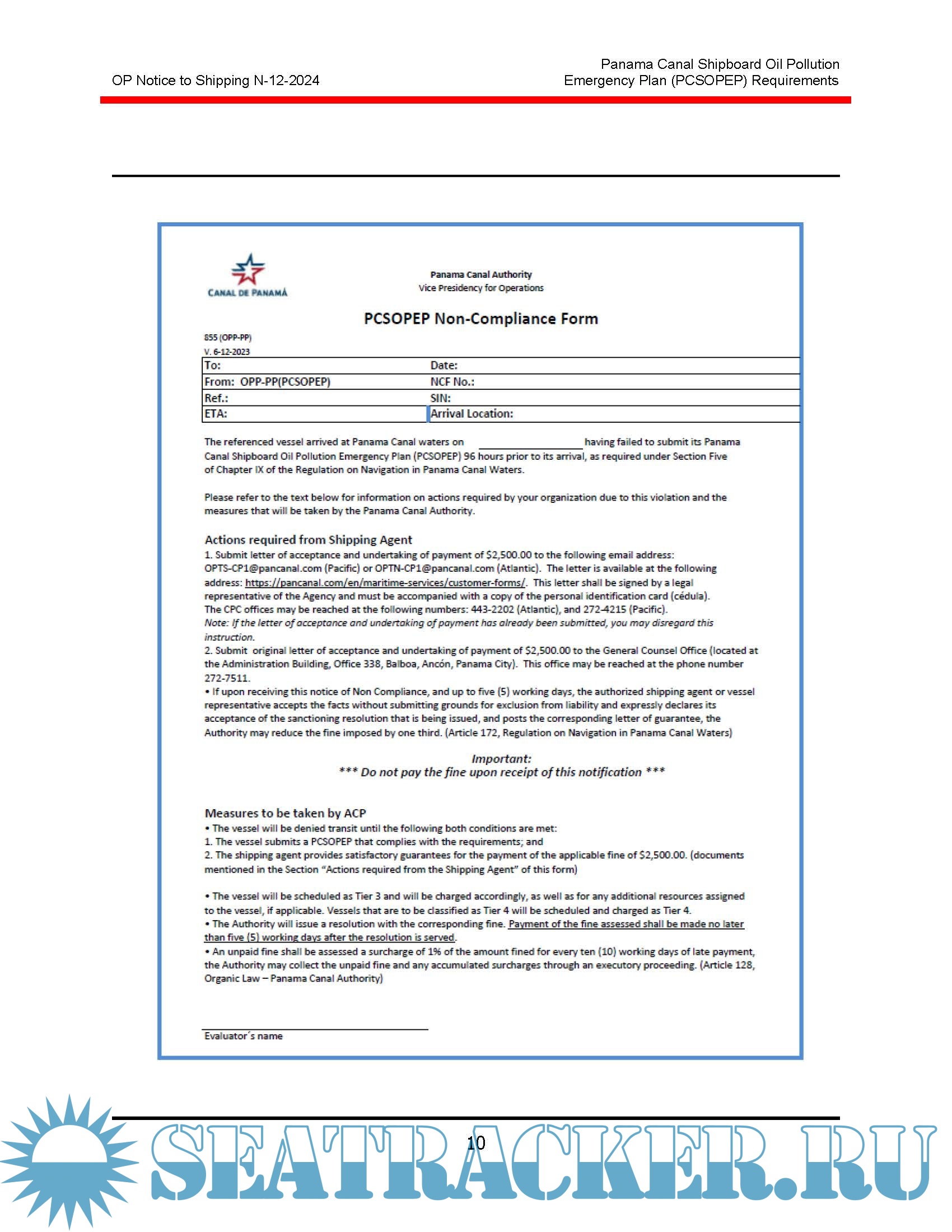 • Panama Canal Shipboard Oil Pollution Emergency Plan (PCSOPEP) Requirements