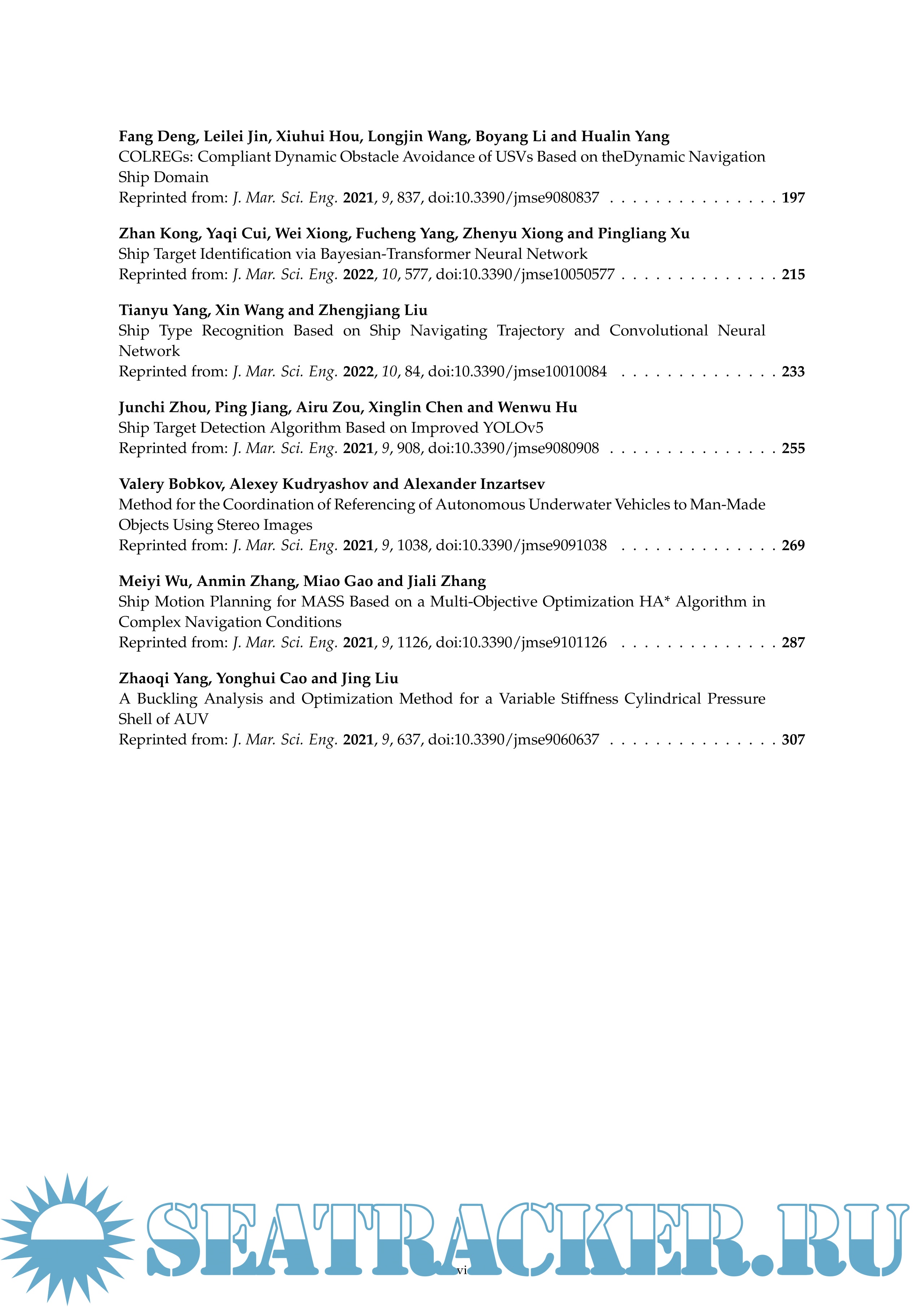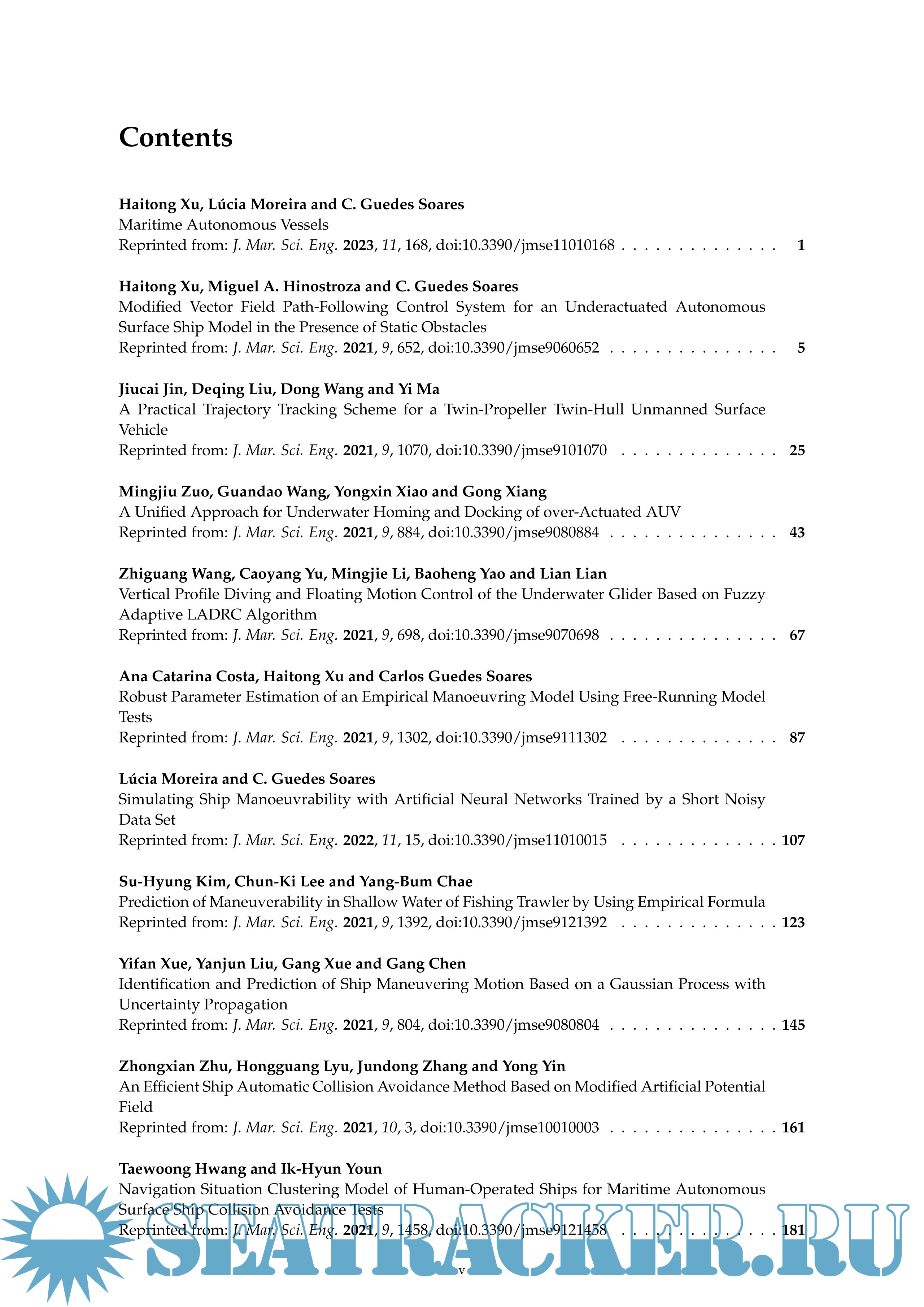 Description: This reprint is a printed edition of the Special Issue on Maritime Autonomous Vessels that was published in the Journal of Marine Science and Engineering. It contains an editorial and 17 peer-reviewed research studies in the field of Maritime Autonomous Surface Ships (MASS), Unmanned Surface Vessels (USVs), Autonomous Underwater Vehicles (AUVs), and underwater gliders, to name a few. The main goal of this reprint is to address key challenges, thereby promoting research on marine autonomous ships. There are many topics on autonomous vessels involved in this reprint, for instance, automatic control, manoeuvrability, collision avoidance, ship target identification, motion planning, and buckling analysis.