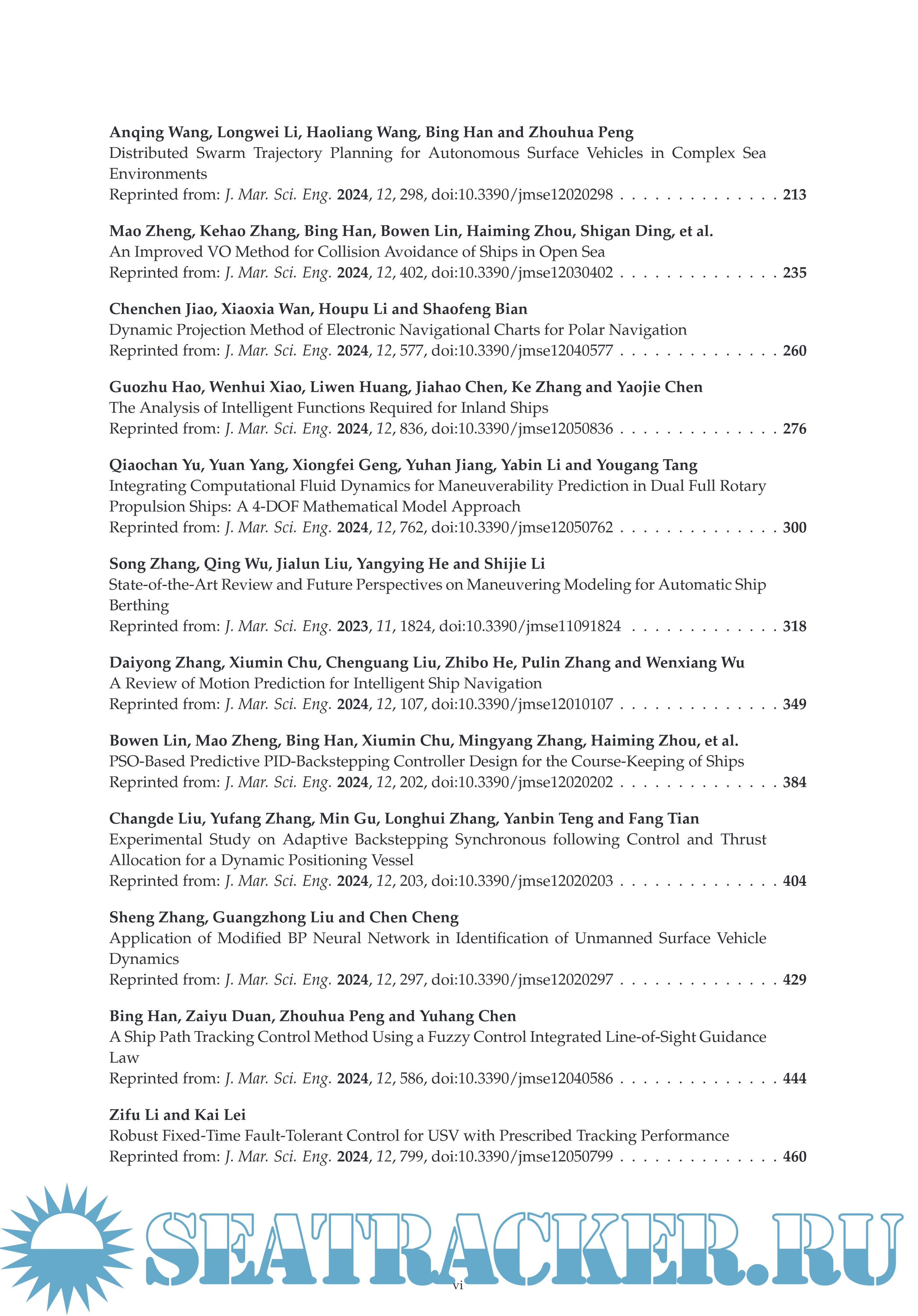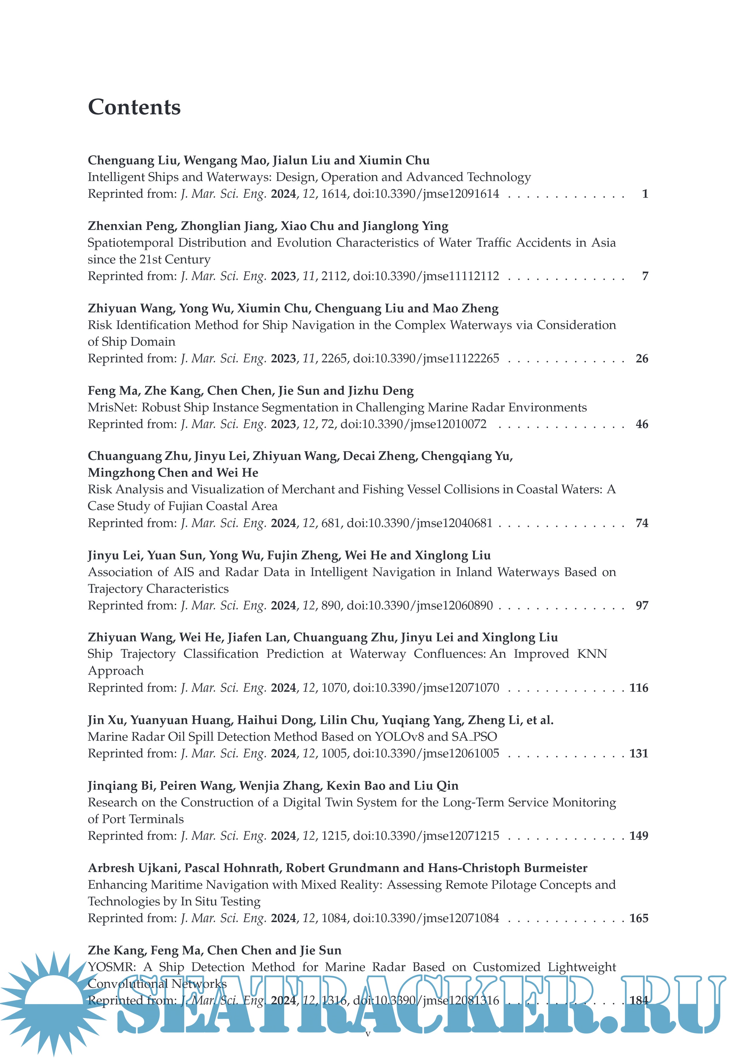 Description: With the perspective of full lifecycle, the developments covering design and sustainable operation process for intelligent ships and waterways have obtained more attention. This Reprint focuses on the waterway monitoring, real-time ship environment perception, human-like decision-making, route planning, and high-precision motion control, in combination of advanced technologies including artificial intelligence, big data analysis, mixed reality, building information modelling, and digital twin, in order to improve the safety, efficiency and sustainability throughout the lifetime of intelligent ships.