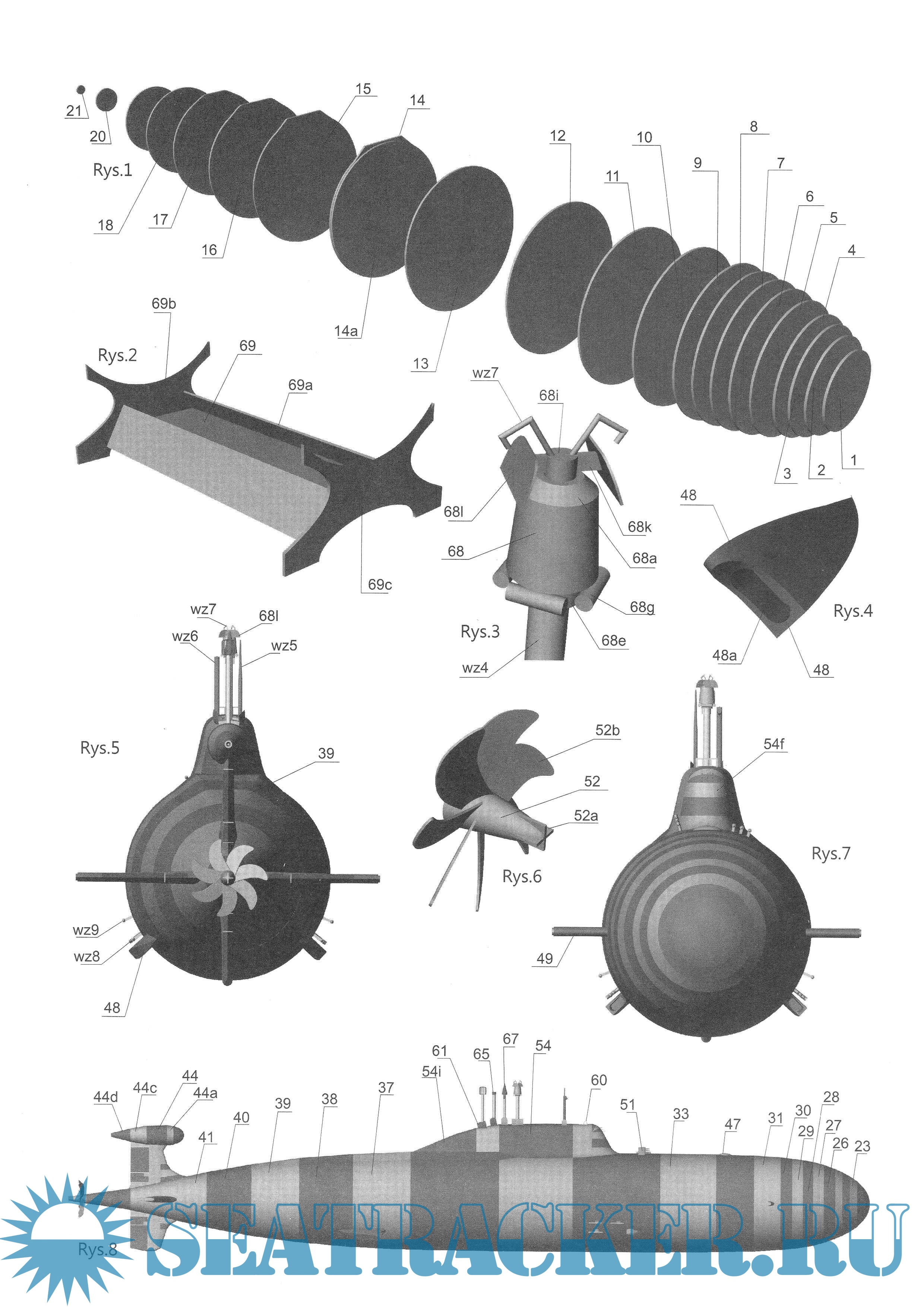 Германская подводная лодка BIBER (модель из бумаги) - Пётр Мотяка [2007, JPEG]