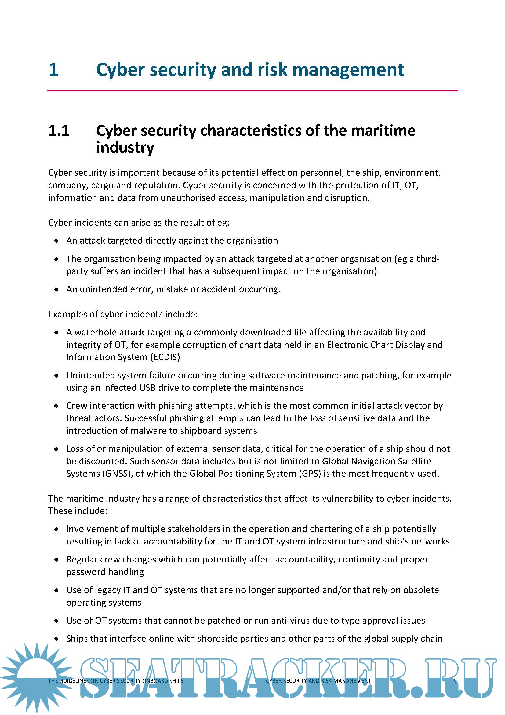 Year: 2024 Language: English Author: BIMCO and Other industry organisations Genre: Guide, Textbook Publisher: BIMCO Edition: Version 5 (November, 14 2024) Format: PDF Quality: eBook Pages count: 85 Description: The purpose of these guidelines is to improve the safety and security of seafarers, the environment, the cargo and the ships. The guidelines aim to assist in the development of a proper cyber risk management strategy in accordance with relevant regulations and best practises on board a ship with a focus on work processes, equipment, training, incident response and recovery management. These guidelines explain why and how cyber risks should be managed in a shipping context. The supporting documentation required to conduct a risk assessment is listed and the risk assessment process is outlined with an explanation of the part played by each component of cyber risk. This publication highlights the importance of evaluating the likelihood and threat in addition to the impact and vulnerabilities when conducting a cyber risk assessment. Finally, this publication offers advice on how to respond to and recover from cyber incidents. The present guidelines are not intended to provide a basis for, and should not be interpreted as, calling for external auditing or vetting the individual company’s and ship’s approach to cyber risk management.