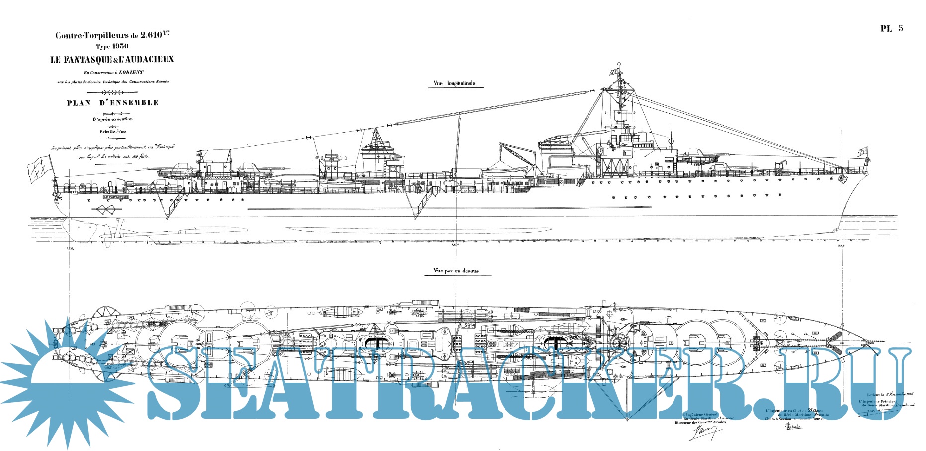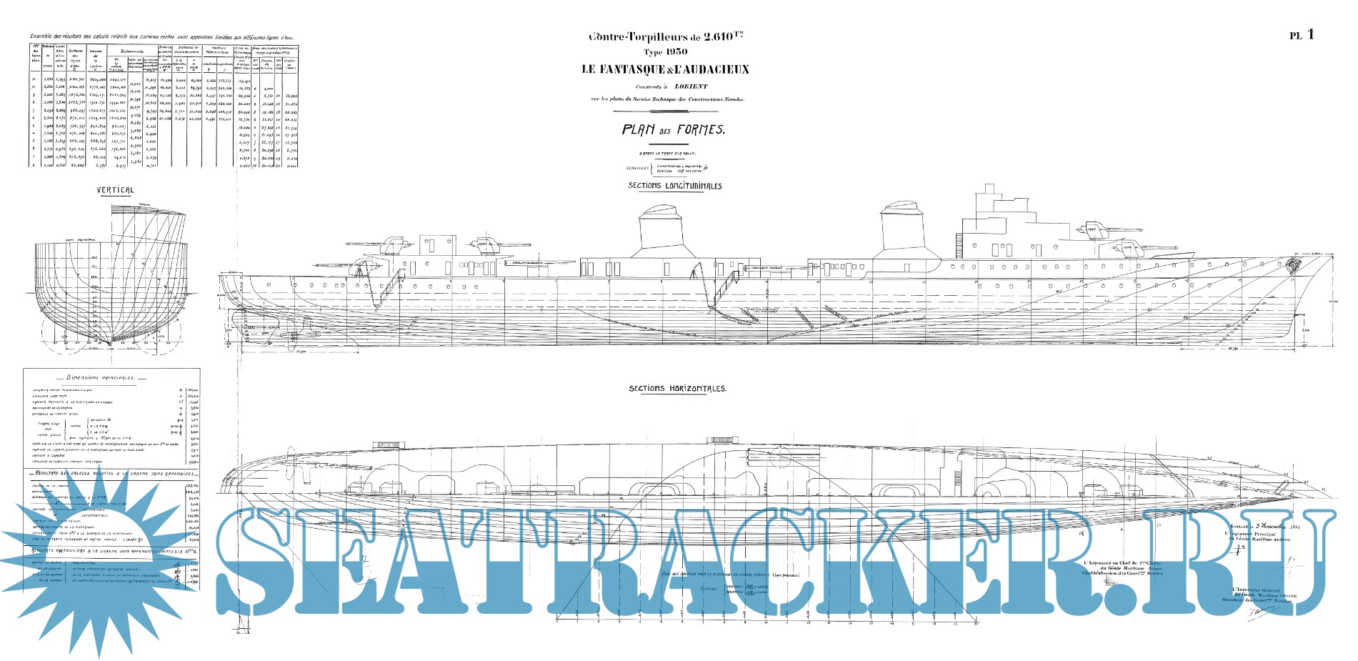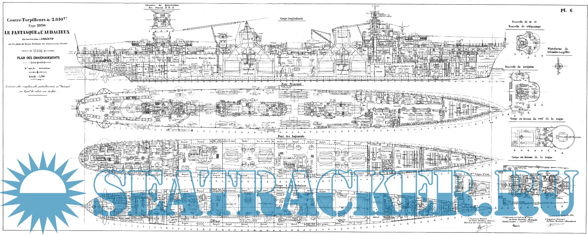 Архивные чертежи французского эскадренного миноносца (лидер) LE FANTASQUE 1934 год