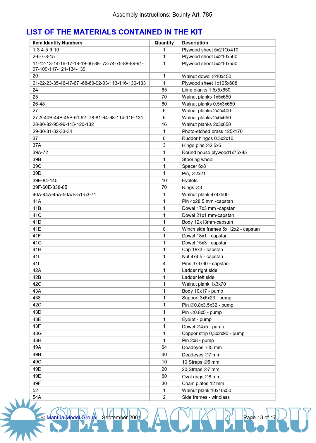 Description: Building instructions manual which is a part of Bounty 785 ship model kit documents set.