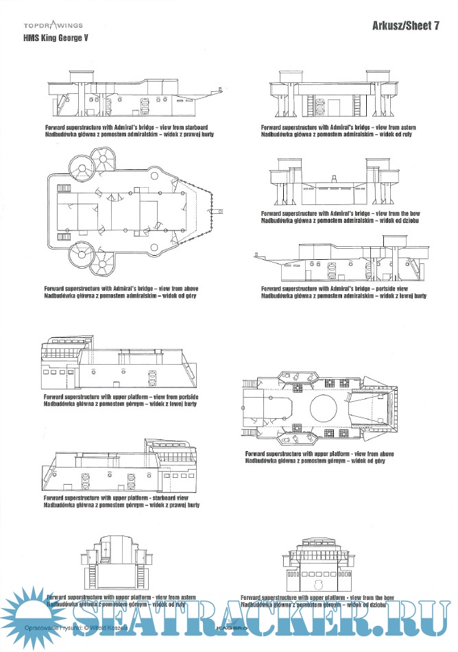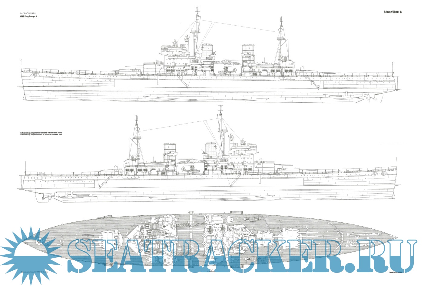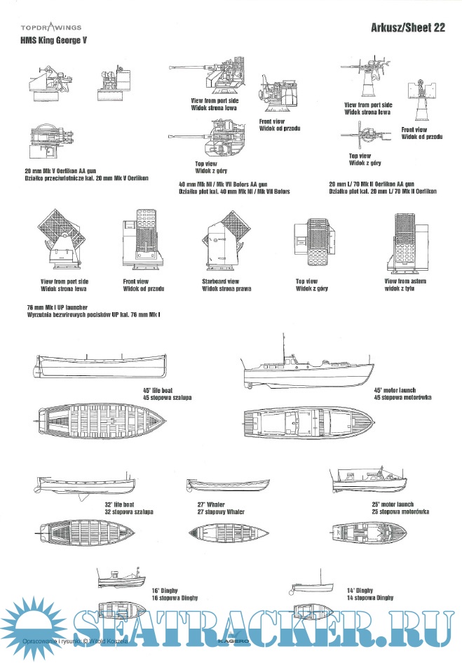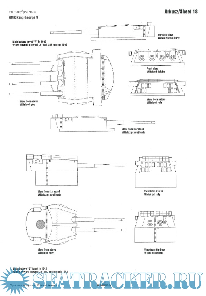 Year: 2013 Language: English, Polish Author: Witold Koszela Genre: Drawing Edition: Kagero Topdrawings 17 Format: PDF Quality: eBook Pages count: 32 Description: At the beginning of the 1930s Britain was obliged not to build new battleships due to signed naval treaties. Standard displacement for any new battleship was limited to 35,000 tons with the caliber of main armament not exceeding 406 millimetres. Britain was trying to impose the next treaty decreasing guns caliber even further to 356 mm. Five King George V-class battleships eventually were armed with guns of such caliber. Standard displacement limits compelled placing main guns in three separate turrets with two of them carrying four cannons each. King George V-class entered service in 1940. Out of the five battleships of this class ever built one was sunk (HMS Prince of Wales) while the other four survived the war and were scrapped in the 1950s. This book by Witold Koszela starts with the set of perfectly made detailed line drawings/scale plans of all King George V-class vessels.