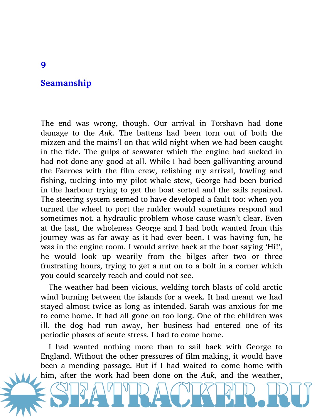 But the book is not just a travel journal. Adam Nicolson writes of his own yearnings for the sea and for wide open spaces. His year is strung between the competing claims of leaving and belonging, of thinking that no life could be more exhilarating than battling a big gale driving in out of the Atlantic and of wanting to be back, in harbour, safe, still and protected. Running throughout the book is a dialogue within the author himself between the attractions of home and not home, the certainties of what you know and the seductions of what you don't.