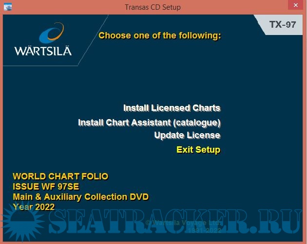 Wartsila (Transas) World Folio, Issue WF 97SE, Main & Auxiliary Collection DVD (Tx97) with NE
