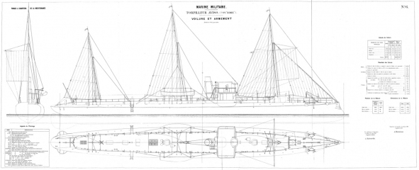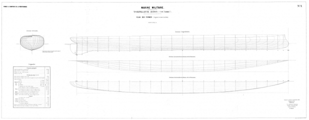 Архивные чертежи французского миноносца FLECHE 1885 год