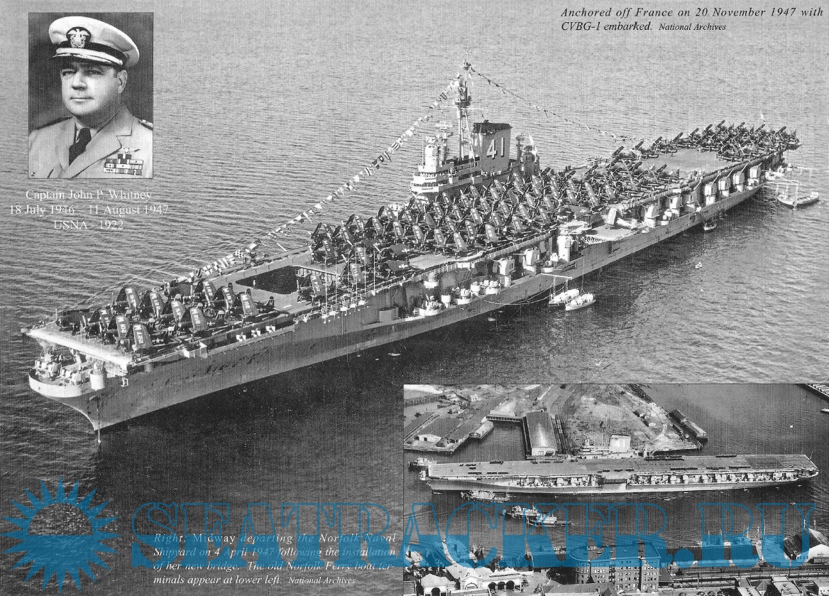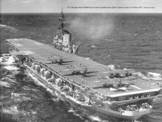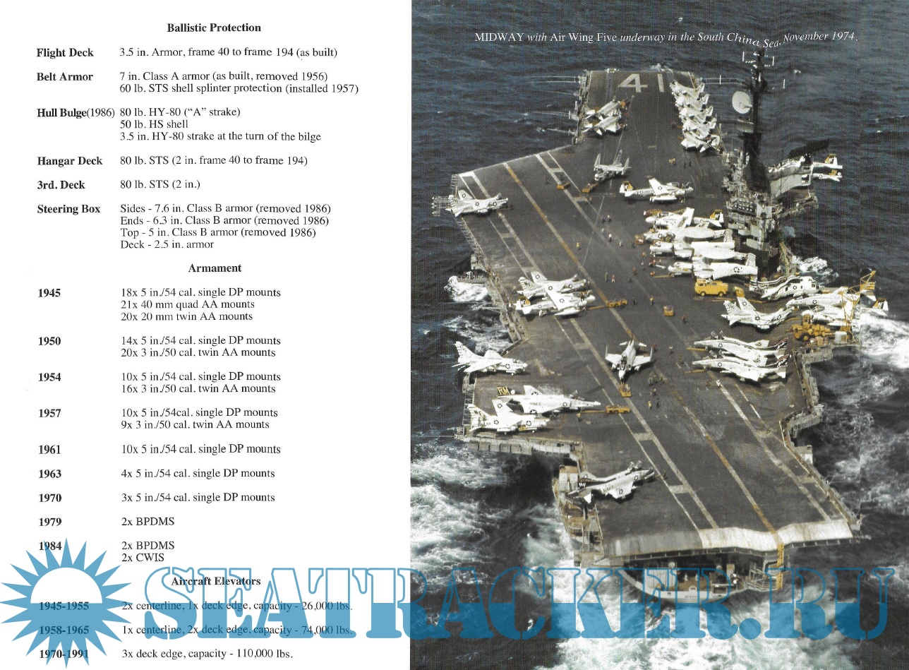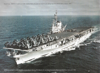 Description: USS Midway (CV-41) is an aircraft carrier, formerly of the United States Navy, the lead ship of her class. Commissioned a week after the end of World War II, Midway was the largest ship in the world until 1955, as well as the first U.S. aircraft carrier too big to transit the Panama Canal. She operated for 47 years, during which time she saw action in the Vietnam War and served as the Persian Gulf flagship in 1991's Operation Desert Storm. Decommissioned in 1992, she is now a museum ship at the USS Midway Museum, in San Diego, California, and is the only remaining inactive U.S. aircraft carrier that is not an Essex-class aircraft carrier.