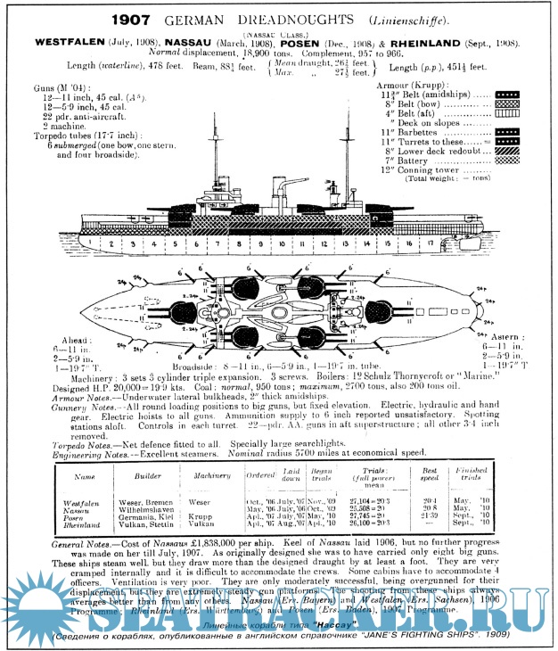 Линейные корабли Германии. Часть 1. "Нассау", "Вестфален", "Рейнланд", "Позен"