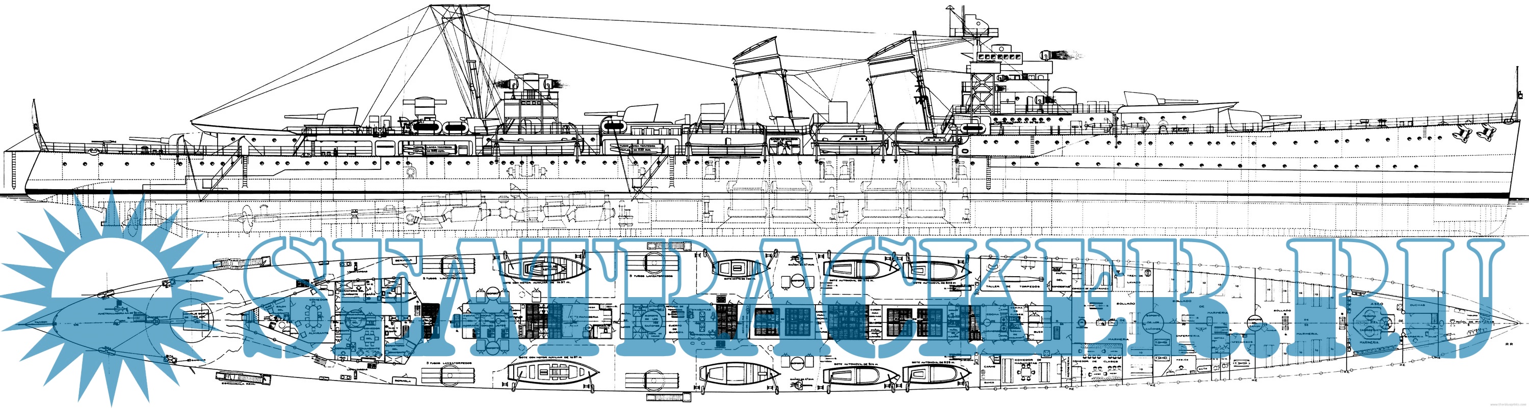 7 листов архивных чертежей испанского крейсера "Almirante Cervera" 1925 годСкриншоты