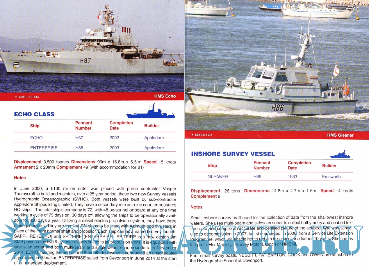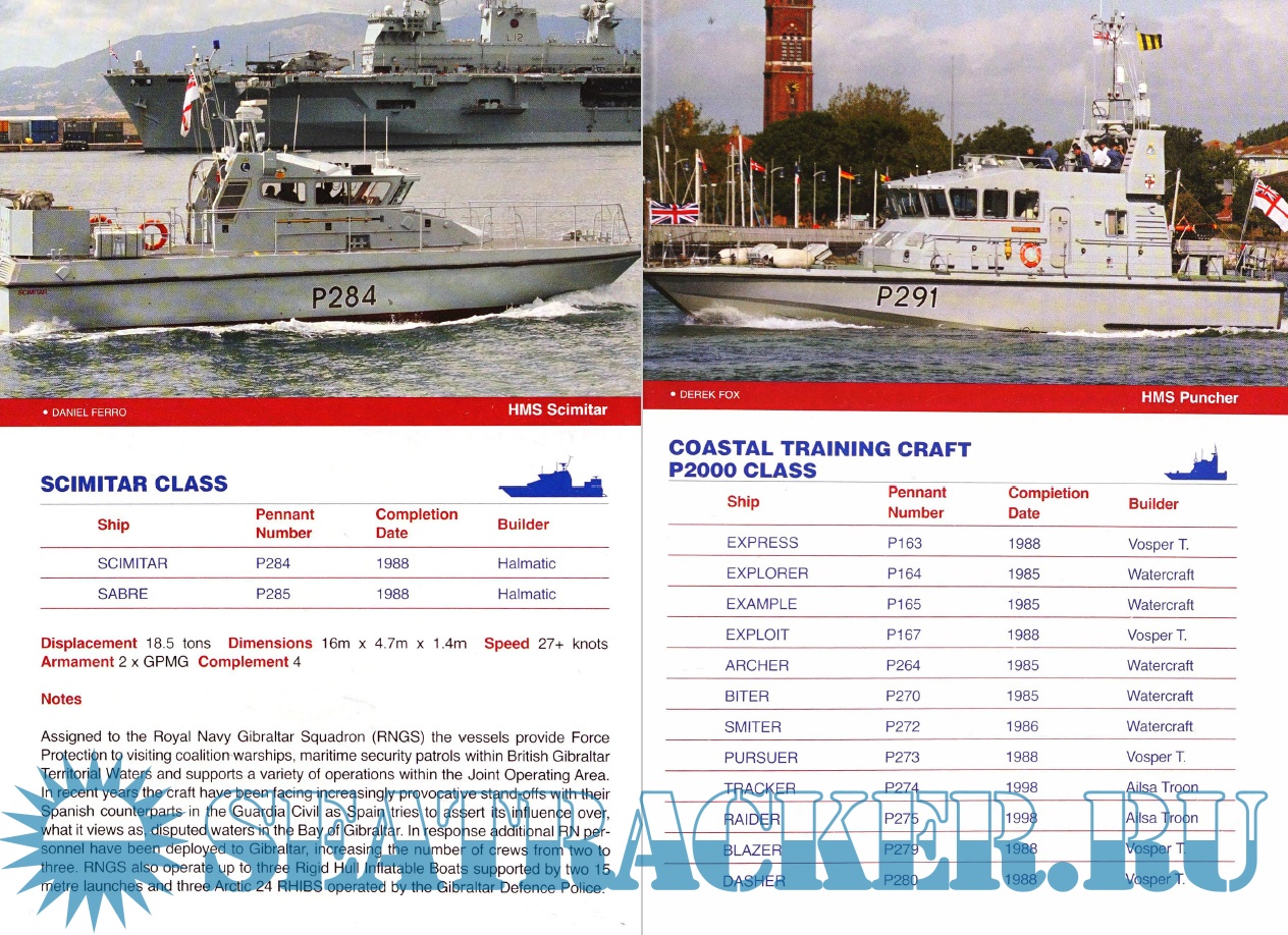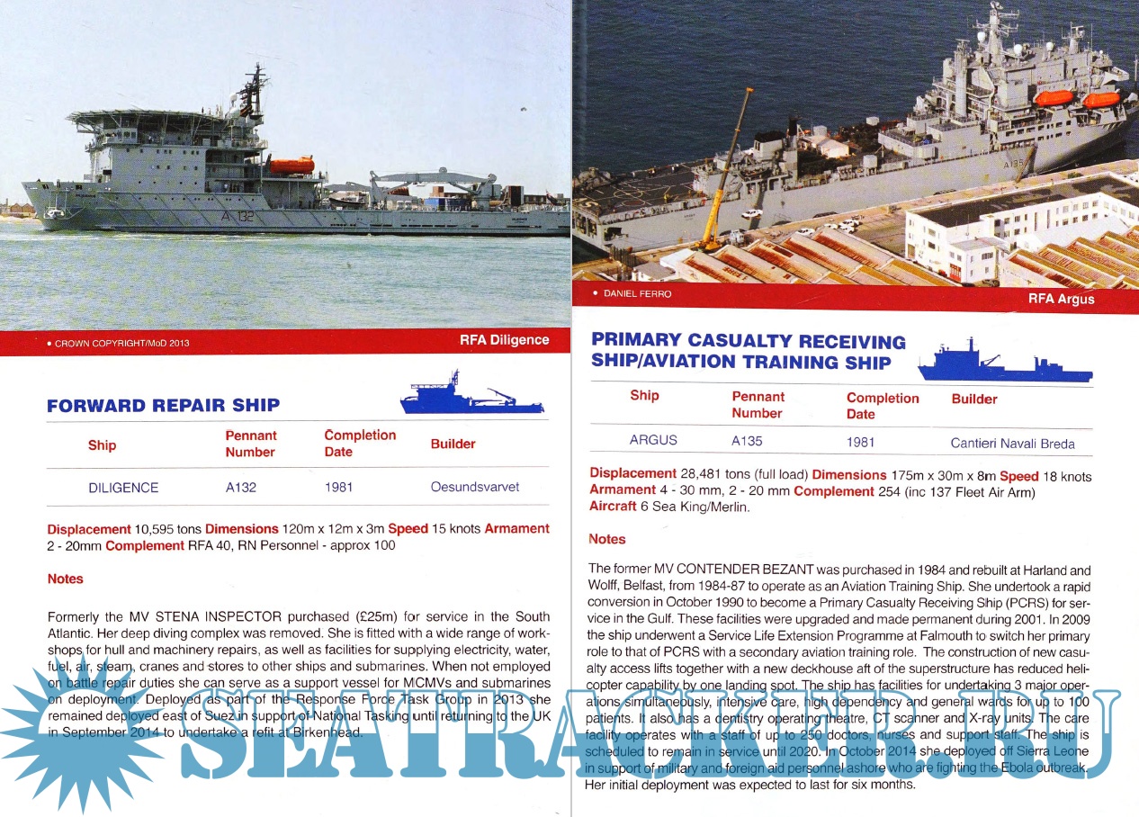 Year: 2016 Language: English Author: Maritime Books Genre: Catalog, Encyclopedia, Historical Format: PDF Quality: eBook Pages count: 124 Description: This revised and updated guide to Ships, Aircraft and Armaments of the Royal Navy has now been expanded to include ships of the Royal Marines and the Border Agency as of 2016. The book begins with a detailed overview of the current state of the Royal Navy, followed by sections detailing the fleets of the Royal Navy, Royal Navy auxiliary vessels and support vessels operated under contract. This also includes vessels of the Royal Marines, Land Forces and Border Troops. This volume, which contains color images for each class of ships, also contains silhouettes, class lists, pennant numbers, technical specifications and brief notes. At the end of the book is a list of ships mothballed in the United Kingdom and performing a secondary role after decommissioning, as well as a brief description of ships that have been scrapped since the publication of the previous edition.