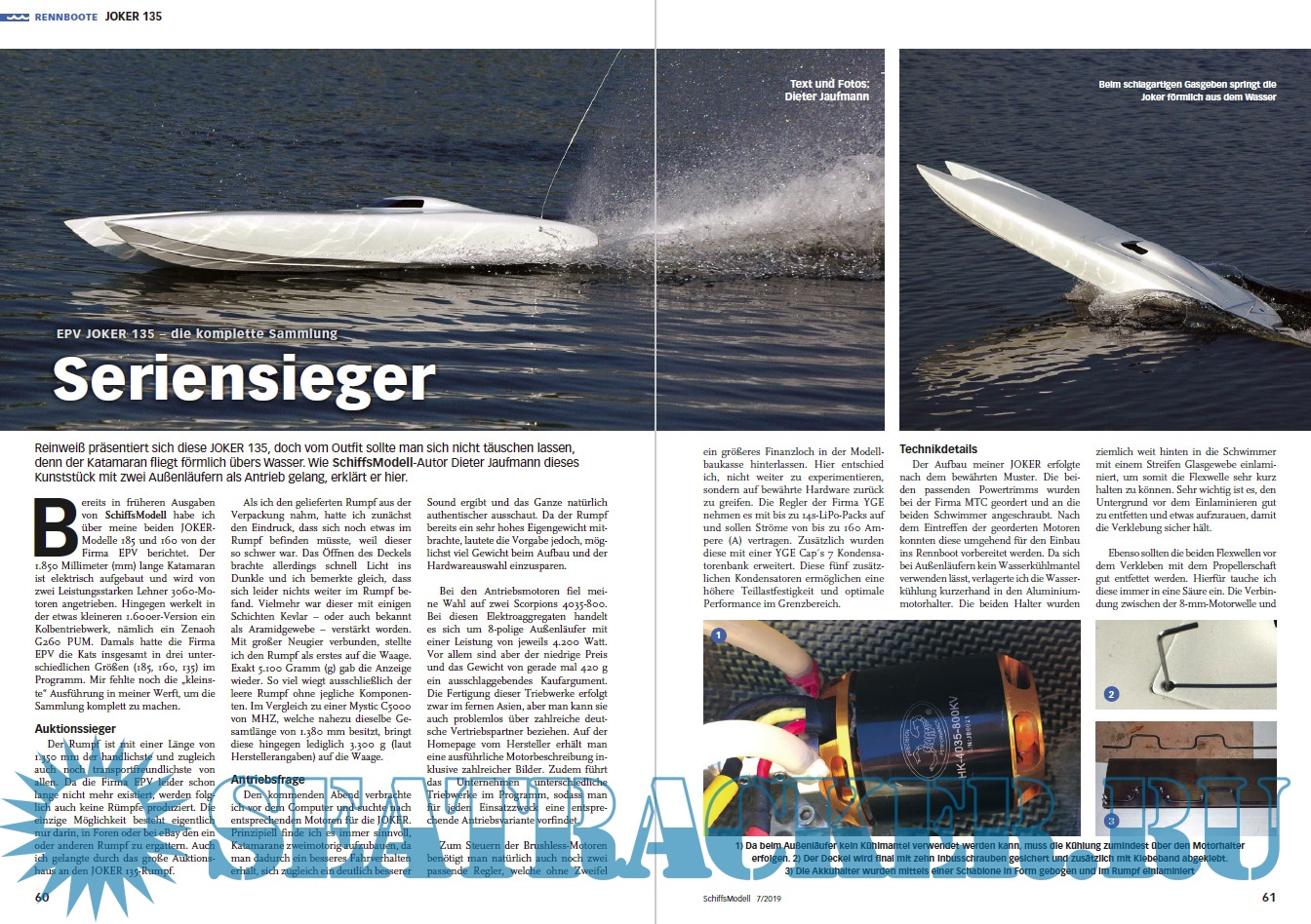 Year: 2019 Language: German Author: Mario Bicher (Redaktor) Genre: Periodical publication Edition: 2019-07 Format: PDF Quality: eBook Pages count: 76 Description: SchiffsModell is the magazine for those who enjoy radio controlled and fully functional Modellnachbauten of ships of all kinds.