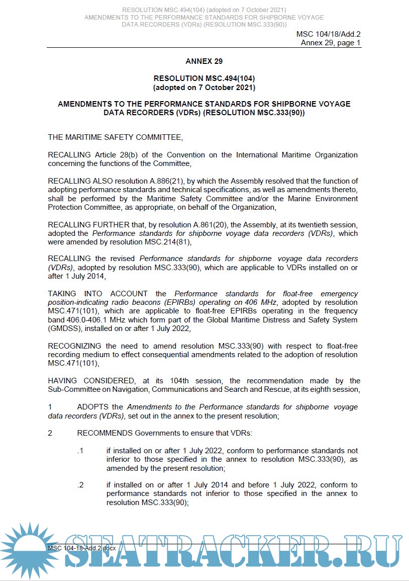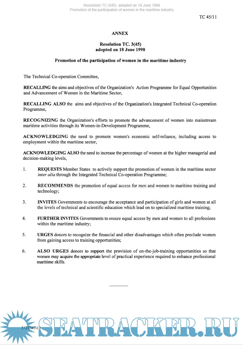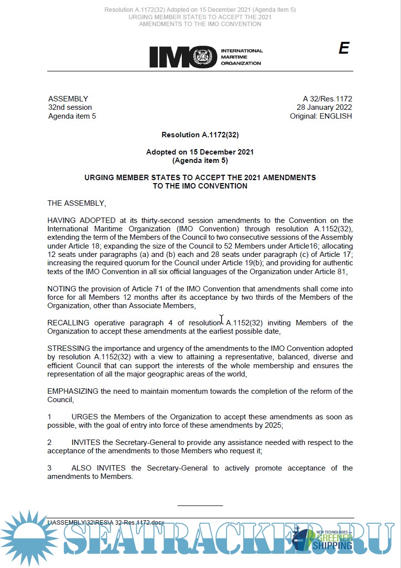 Additional info: IMO Resolutions are adopted by the key organs and committees of the Organization. Resolutions are first issued within the official IMO meeting reports and documents relating to the relevant committee or organ.