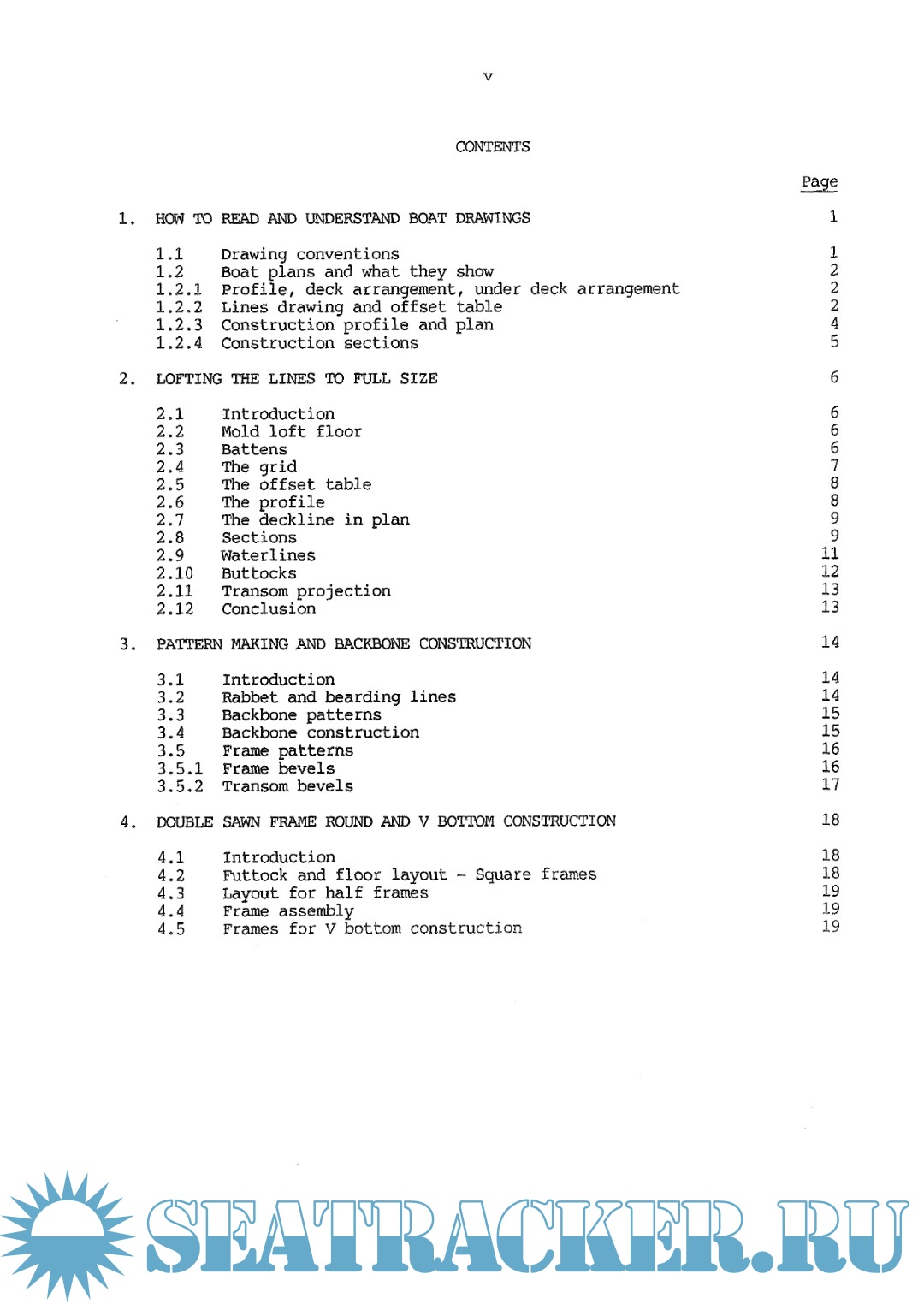 Description: This publication deals with small fiching boat construction. Srction 1 and 2 explain the archotect's design drawins and how to sraw these out to full size for the making of patterns for the various construction members and is the first step in the building of any boat from plans. Section 2 to 5 summarise the construction procedures for building wooden craft with sawn frames. Round bottom and V-bottom construction using sawn frames is described.