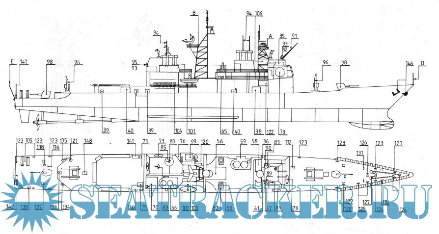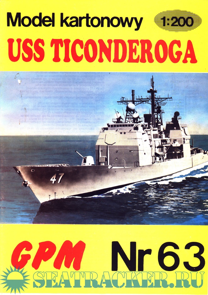 Описание: 22 листа цветных выкроек и инструкций для изготовления бумажной модели крейсера США USS Ticonderoga в масштабе 1:200