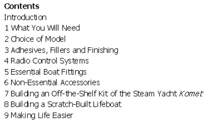 Description: Building scale model boats that can sail under their own power is a challenging and rewarding hobby requiring varied skills from woodworking to painting to wiring electrical components. This book details everything you need to know to get started: from the tools, materials and equipment required to motors, servos, propellers and remote controls. There are step-by-step guides to the more challenging procedures. There are details on the different types of kits available and how to choose one. Advice is given on glues, fillers, making silicon moulds, and finishes such as painting, decals and weathering. Finally, there is the building of an off-the-shelf kit for the steam yacht Komet and scratch-built RNLI Lifeboat The Torbay Severn class lifeboat.