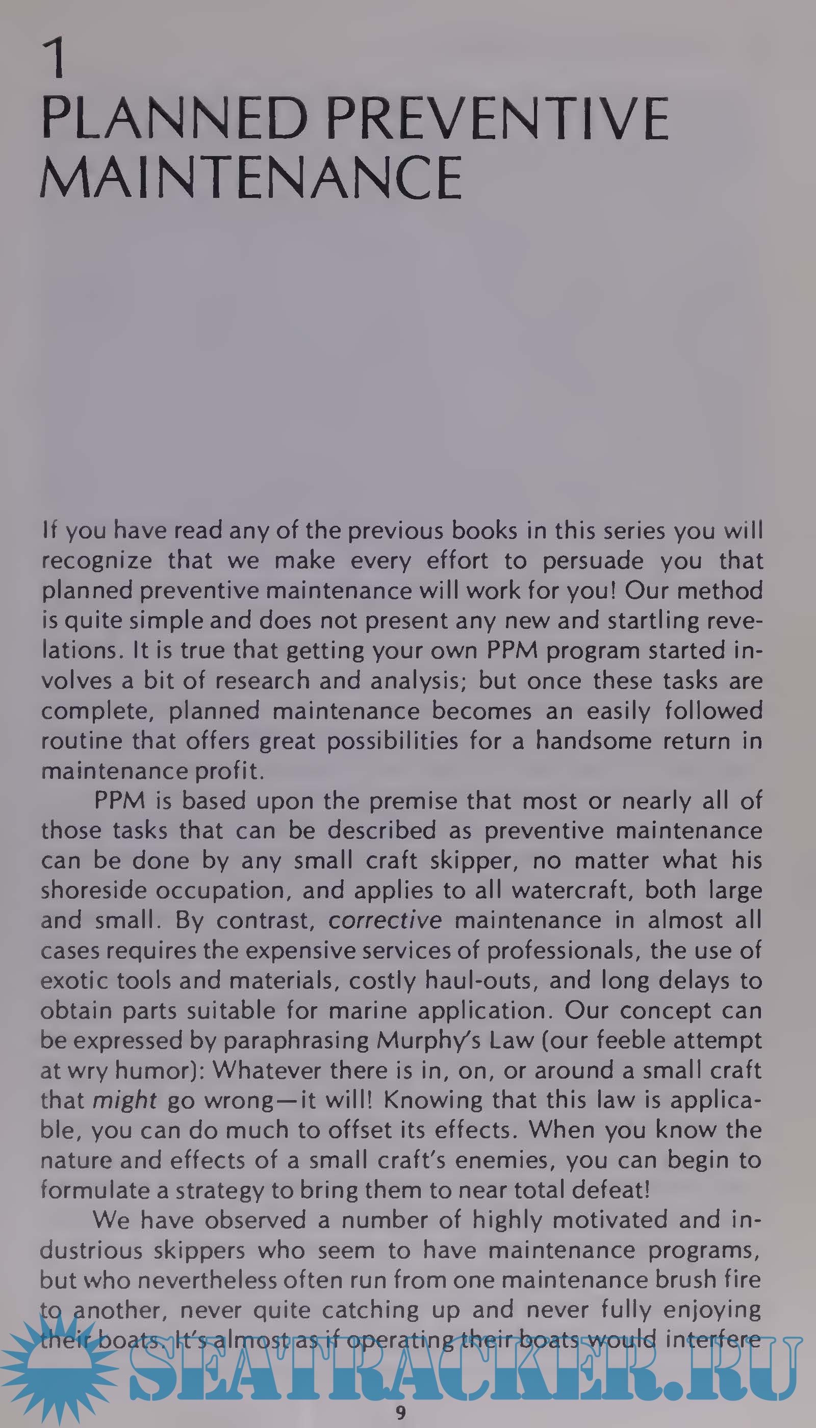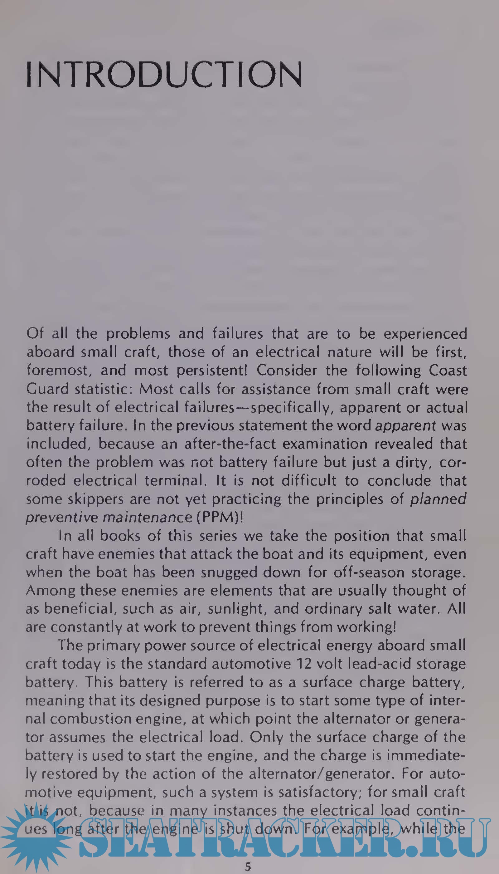 Year: 1978 Language: English Author: David MacLean Genre: Guide, Handbook Publisher: Tab Books Edition: 1st ISBN: 978-0830689460 Format: PDF Quality: Scanned pages + text layer Pages count: 145 Description: Boat Owner's How-to Guide. Of all the problems and failures that are to be experienced aboard small craft, those of an electrical nature will be first, foremost, and most persistent! Consider the following Coast Guard statistic: Most calls for assistance from small craft were the result of electrical failures-specifically, apparent or actual battery failure. In the previous statement the word apparent was included, because an after-the-fact examination revealed that often the problem was not battery failure but just a dirty, corroded electrical terminal. It is not difficult to conclude that some skippers are not yet practicing the principles of planned preventive maintenance (PPM)! In all books of this series we take the position that small craft have enemies that attack the boat and its equipment, even when the boat has been snugged down for off-season storage. Among these enemies are elements that are usually thought of as beneficial, such as air, sunlight, and ordinary salt water. All are constantly at work to prevent things from working!