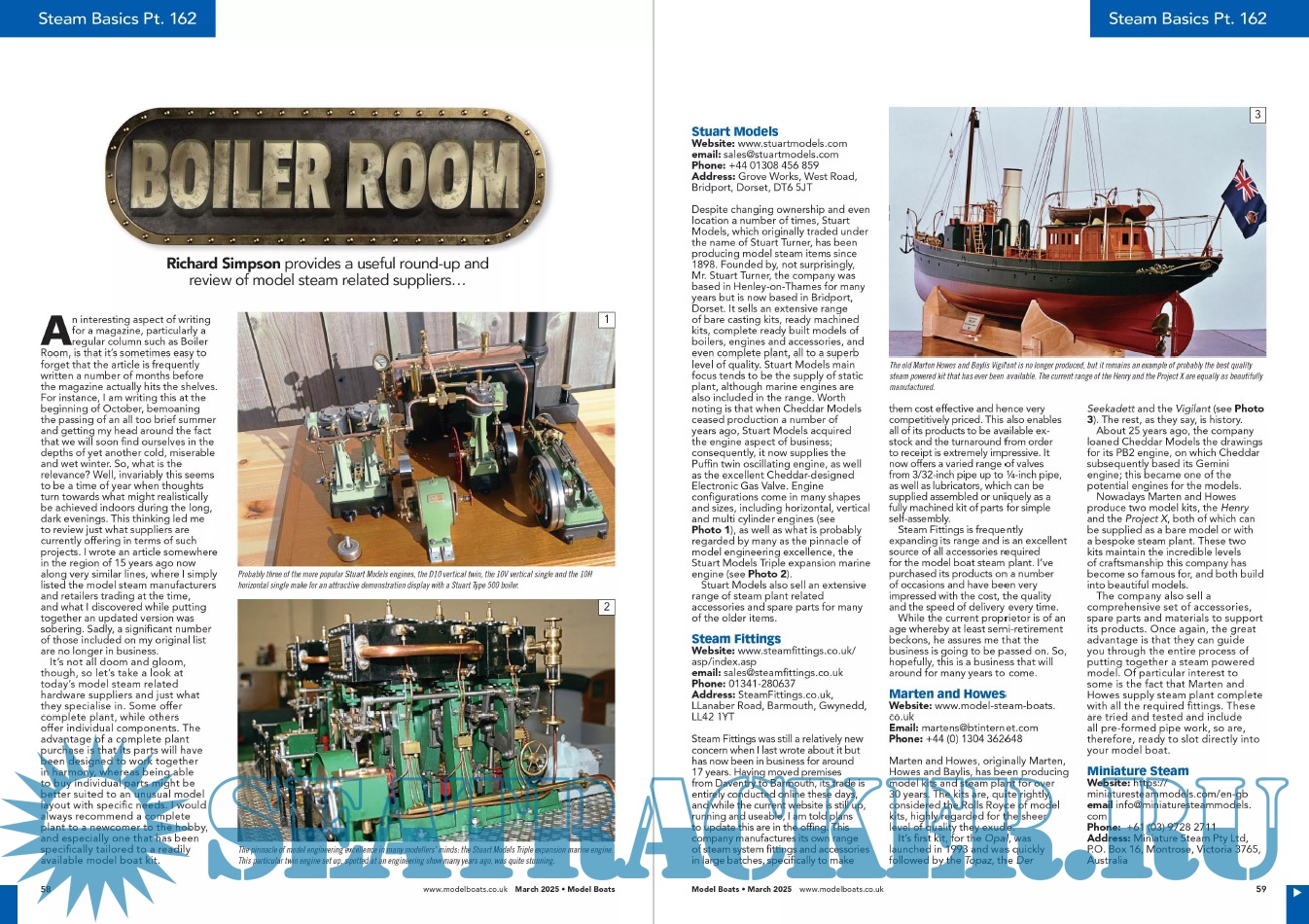 Description: Model Boats magazine is a practical and informative read for those with a love for the hobby. It covers the latest news and views from the various clubs and associations around the country, useful hints, tips and step by step guides for those interested in the art of constructing a model boat as well as tests and recommendations of new boats and tools. Floating along behind these are great special features examining in depth different models from narrowboat to destroyer!