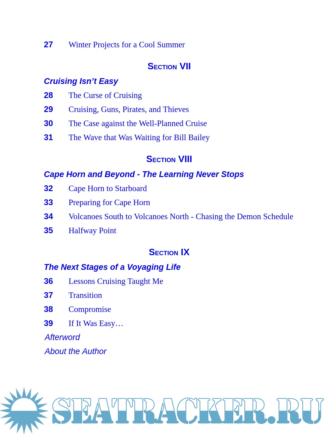 Description: This book is what the title says. It is the distillation of what the Pardey's have learned in 150,000 miles of sailing on board their two cutters, Seraffyn and Taleisin, and on scores of other boats they have delivered or raced. Lin and Larry tell how they have sailed in comfort and safety without large cash outlay- on a pay-as-you-earn-as-you-go plan and by simplifying.In its first edition, this invaluable text has seen nine reprints. Now Lin and Larry have updated and revised the information to make it current and a valuable edition to any sailor's library right up to the millennium.