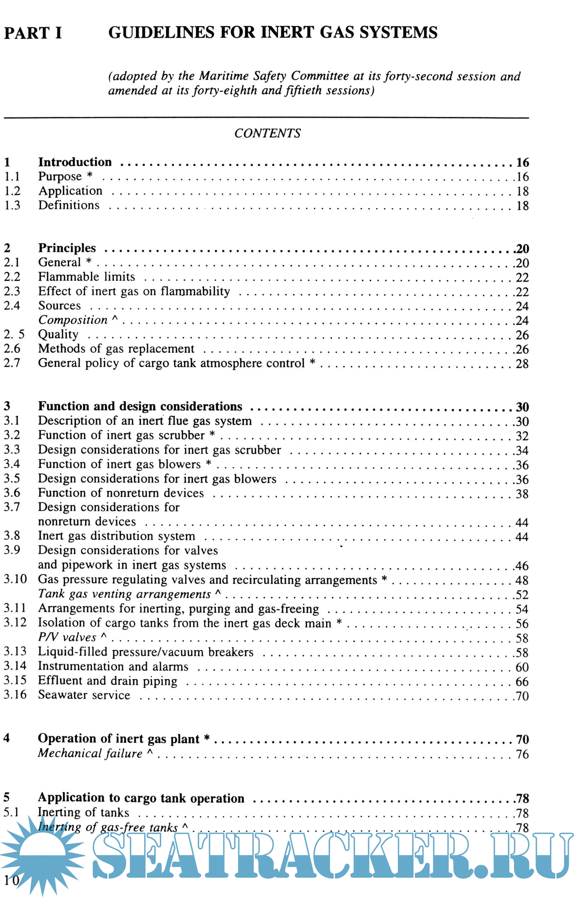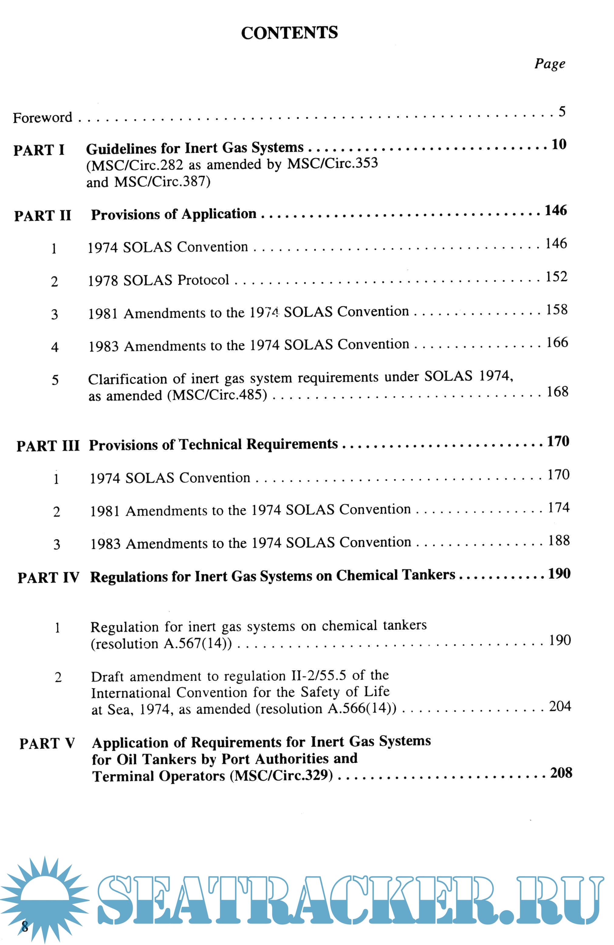 Provisions of the SOLAS Convention covering application and technical requirements for inert gas systems, together with recent developments on regulations for inert gas systems on chemical tankers are included with a view to setting out the framework as well as details of international requirements for inert gas systems.
