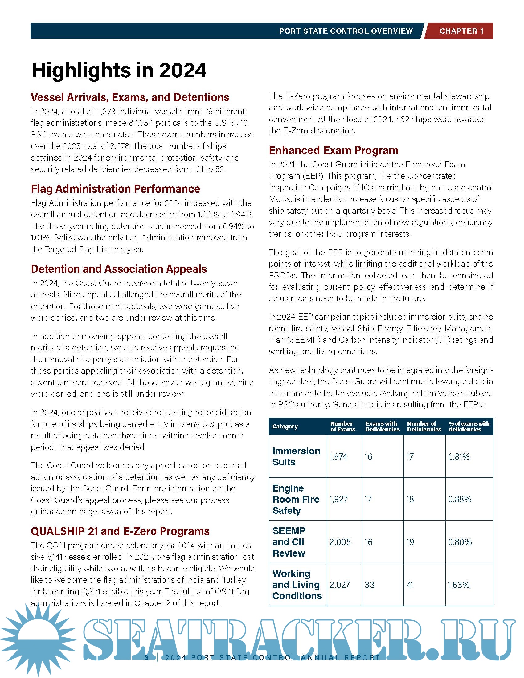 Description: The United States Coast Guard’s Office of Commercial Vessel Compliance has released its 2024 annual report over US port state controls.