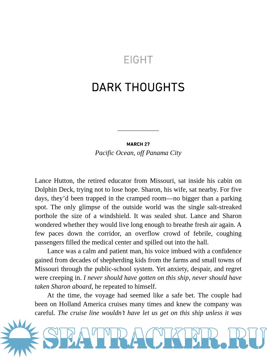 Description: The true story of the Holland America cruise ship Zaandam, which set sail with a deadly and little-understood stowaway—COVID-19—days before the world shut down in March 2020. This riveting narrative thriller takes readers behind the scenes with passengers and crew who were caught unprepared for the deadly ordeal that lay ahead.
