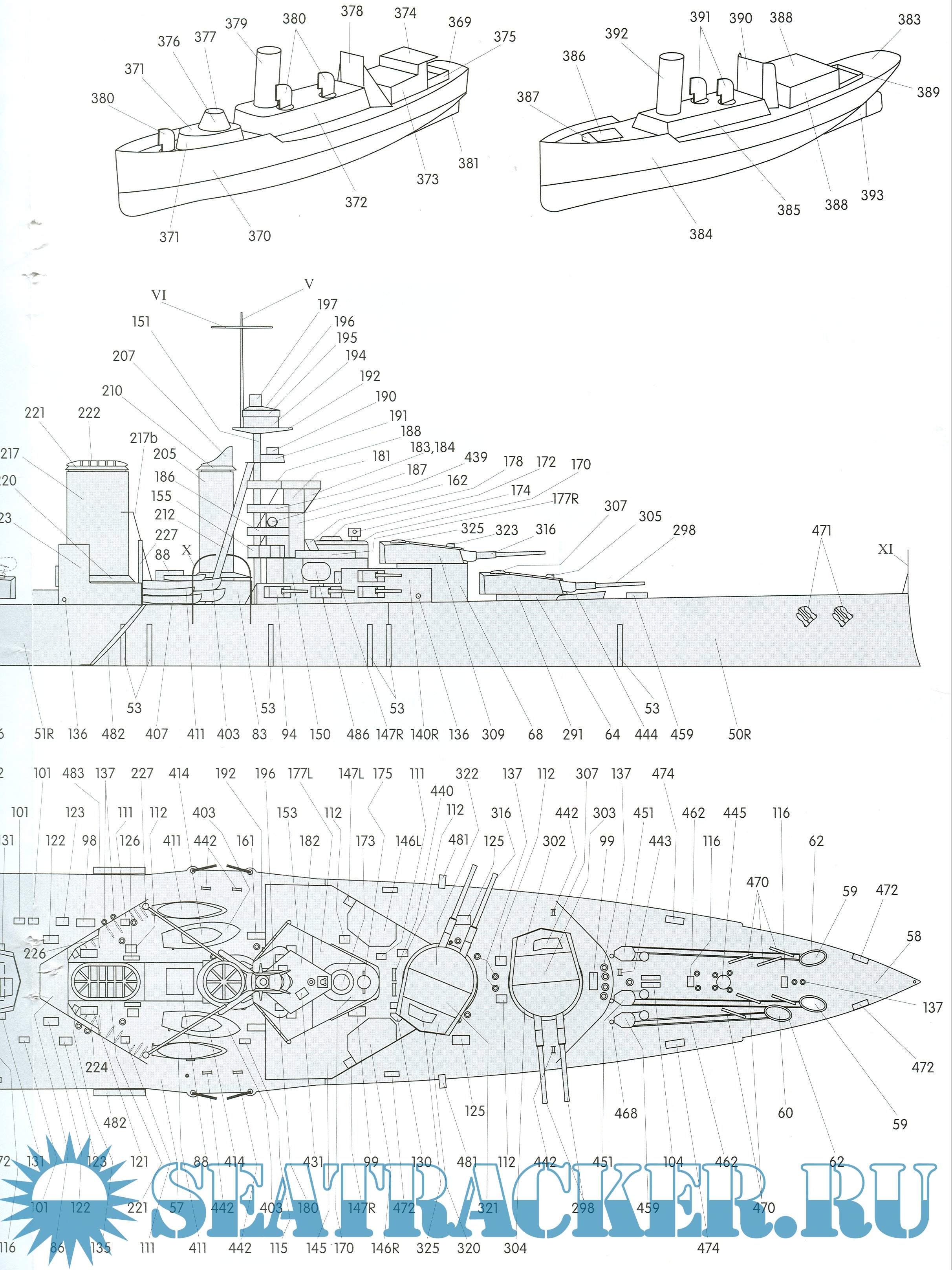 33 листа цветных выкроек и инструкций для изготовления бумажной модели линейного крейсера HMS "LION" (Великобритания) по состоянию на 1918 год в масштабе 1:250