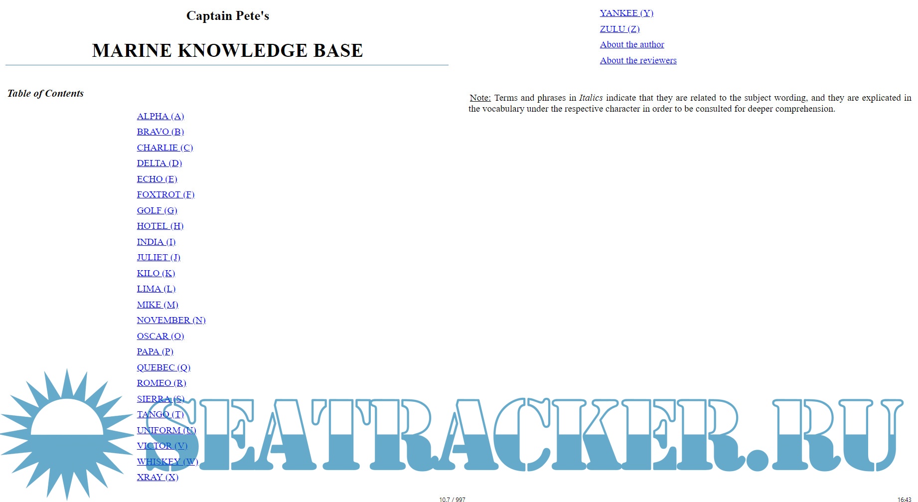Captain Pete's Marine Knowledge Base: Navigation/Ship Handling, Radio Communication, Marine Engineering, Cargo Operations, Maritime Law