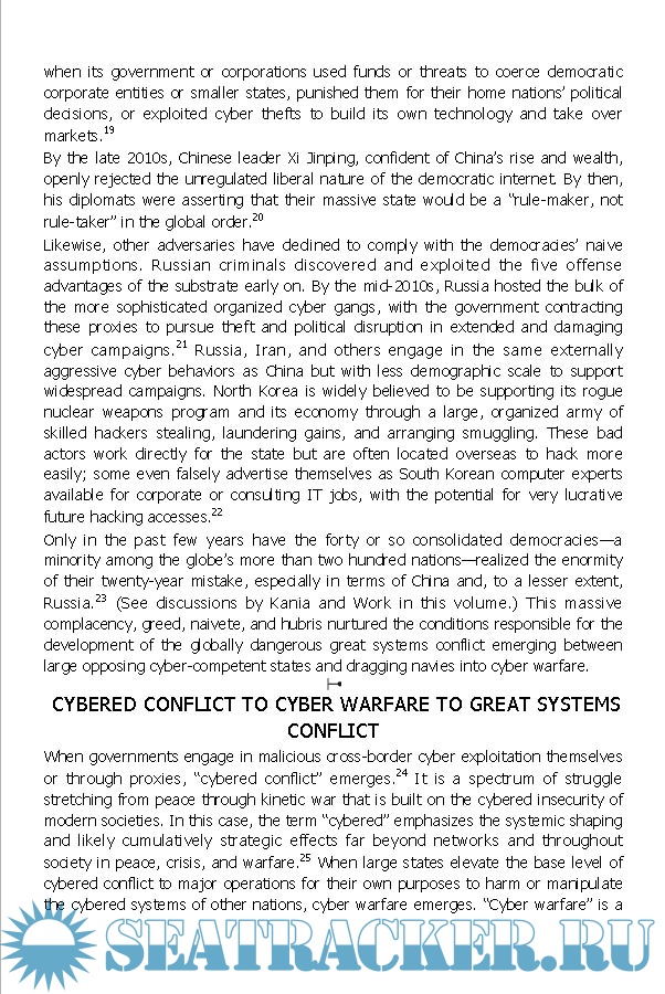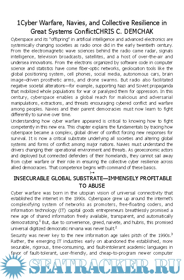 Year: 2025 Language: English Author: Chris C. Demchak (Editor) Genre: Reference book Publisher: Naval Institute Press Format: EPUB Quality: eBook Pages count: 346 Description: Cyber Warfare and Navies, an edited collection, takes a penetrating look into the threats that cyber warfare poses to operations in the maritime environment and the means of defending against cyberattack. As with all elements of the digital age, navies and commercial maritime operations around the world have become increasingly vulnerable to cyber conflict. Navies are obvious targets of hostile national and nonstate cyber actions. Almost every aspect of commercial maritime activities has become digitized and interconnected and thus vulnerable to cyber intrusions, sabotage, viruses, and destruction. In an era when 85 percent of global trade and 70 percent of all liquid fuels travel by sea, cyber effects on ships, port-handling equipment, shipping companies, maritime suppliers, and other maritime industries can cripple manufacturing industries and retail businesses on a global basis. Neither navies nor commercial shipping can “sail away” from cyber threats. Initially, naval leaders had difficulty accepting and preparing for cyber warfare, which is largely viewed as a problem on land and from which ships were perceived as disconnected. As a consequence, effectively integrating cyber operations into its naval warfighting planning has proven challenging not only for the U.S. Navy, but for allied and adversary navies as well. The U.S. Navy created Fleet Cyber Command (FCC), with the U.S. Navy’s Tenth Fleet as its cyber operational arm and the Navy’s component contributing to U.S. Cyber Command (USCYBERCOM). However, thus far those efforts appear not to have served the Navy or USCYBERCOM as well as anticipated. Cyber Warfare and Navies outlines the various threats that cyber warfare poses to naval and commercial maritime operations as well as the abilities of modern navies to defend against those threats. It explains how navies are organized and equipped for cyber operations and the concepts and doctrine adopted by those navies—and provides recommendations on how to improve maritime cyber operations. The book covers not just the U.S. Navy, U.S. Marine Corps, and U.S Coast Guard, but also the navies of allies, opponents (China, Russia), and others. The book also explores the relationship between the U.S. Navy, Marine Corps, Coast Guard, and USCYBERCOM.