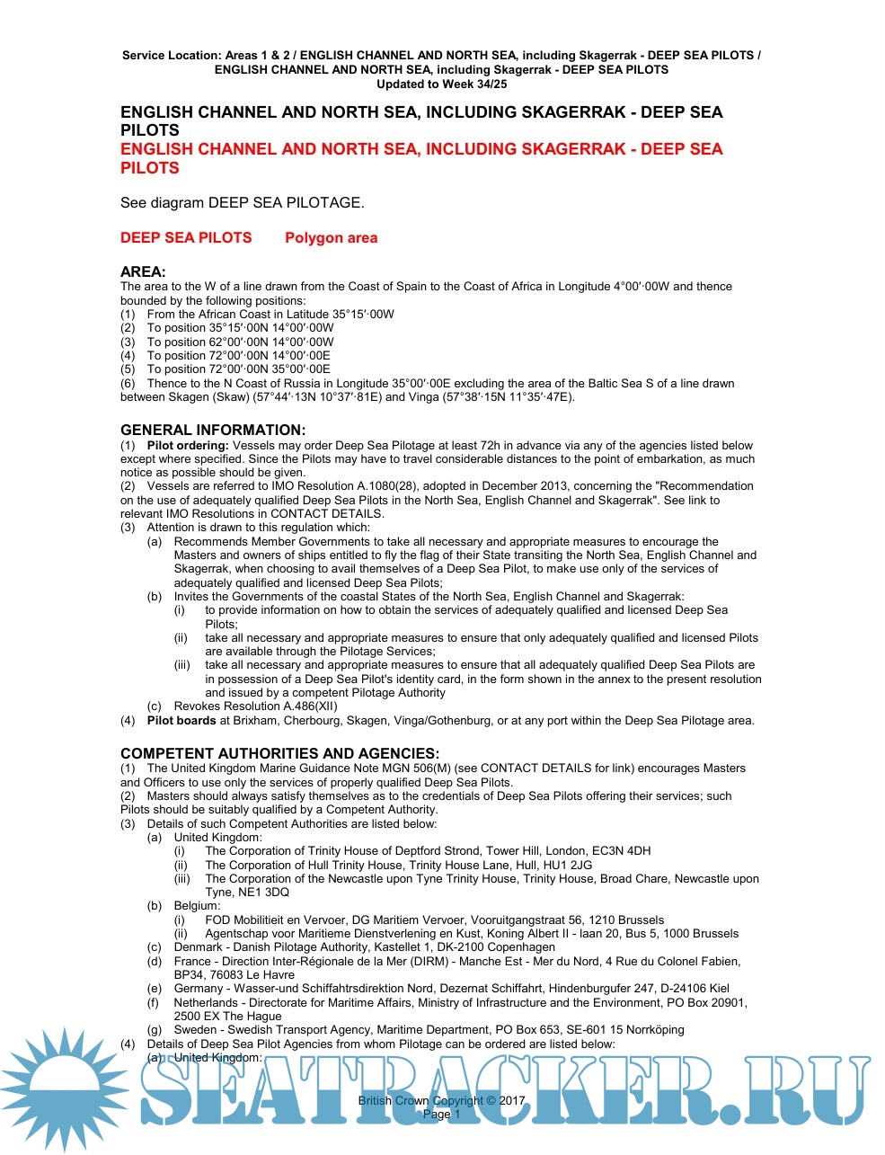 This publication covers all ports of United Kingdom and Europe, including Greenland, Iceland and Faroe Islands, Artic and Baltic Coasts, Mediterranean Sea, Black Sea, Caspian Sea and Suez Canal.