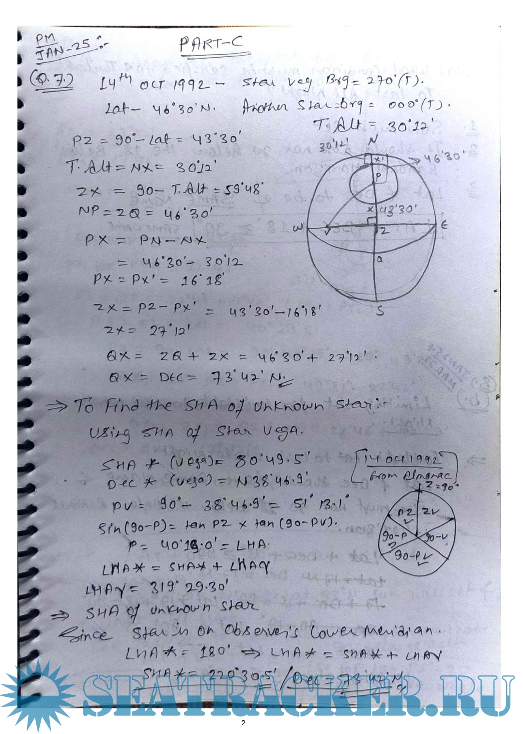 Year: 2025 Language: English Author: Amit Verma Format: JPEG Quality: Photos of pages Pages count: 56 Description: Stream: Phase I Subject: Terrestrial & Coastal Navigation (Handwritten Notes) Solved Part C: Q. 7 & 8 (Jan 2025 ~ Jan 2018) from Past Question Papers of Mercantile Marine Department (MMD), India Examinations Additional info: Part B: https://seatracker.club/viewtop...?p=110086#110086