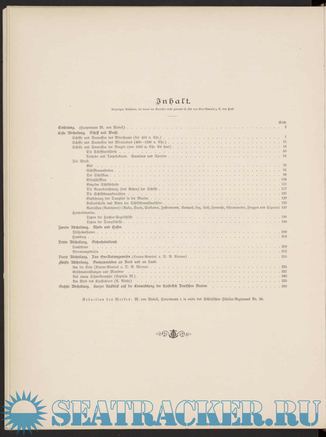 Description: Zur See : mit ca. 300 Original-Illustrationen und 12 Kupferdruck-Kunstblättern . Das Buch beschreibt das seemänische Leben im Hafen, die Reise durch heimische Gewässer und ferne Meere beginnt mit einem Rückblick auf Schiffe und Seewaffen vergangener Tage. Darstellungen zum Schiffsbau und Werften sind zu sehen und das Seerettungswesen wird beschrieben.