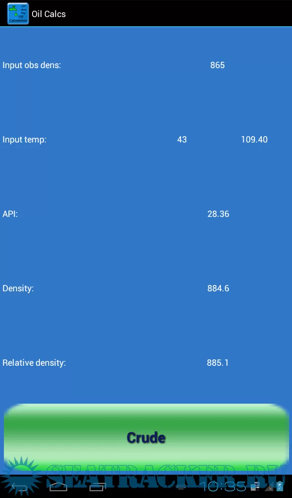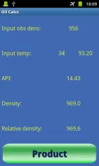 The app can calculate for crude oil, black and white products and lubrication oils, and input can be changed between density in vacuum / API, M3 and Barrels, and degrees Celsius / Fahrenheit.