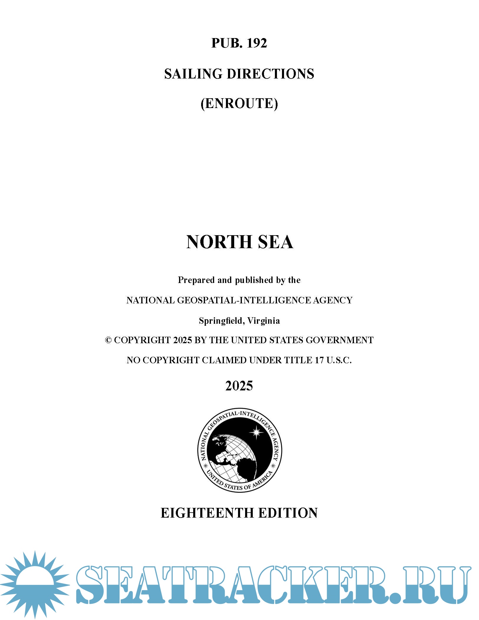 Description: Pub. 192, Sailing Directions (Enroute) North Sea, Eighteenth Edition, 2025, is issued for use in conjunction with Pub. 140, Sailing Directions (Planning Guide) North Atlantic Ocean and Adjacent Seas. Companion volumes are Pubs. 191, 193, 194, and 195. Electronic Nautical Chart Regions Q and R1 provide electronic chart coverage for the area covered by this publication.