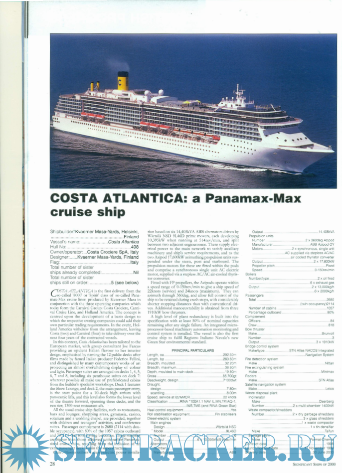 Detailed profiles and technical data of notable ships built in 2000.Screenshots