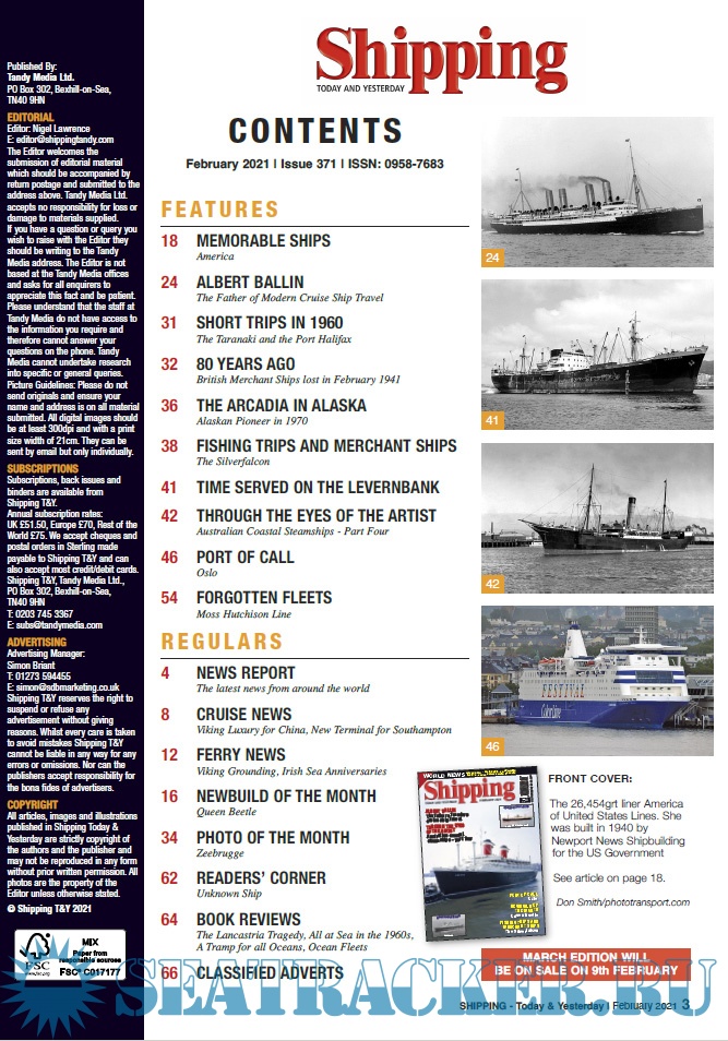 Description: Shipping T&Y is a monthly magazine for the shipping enthusiast offering up-to-date information,topical and in-depth historical articles alongside images, many of which are exclusive to the magazine.