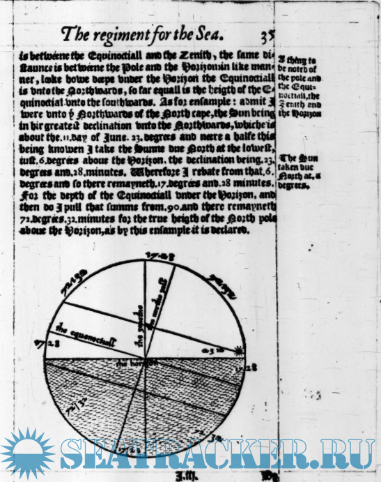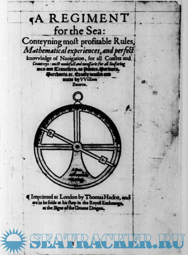 Description: The first extensive, systematic, practical navigation manual in the English language that was widely used and influential. Although it was not the very first English text on navigation, it was the first significant standardized manual on which Davis, Moore, and later Bowditch built. In 1574, Bourne produced a popular version of Martín Cortés de Albacar's Arte de Navegar, entitled A Regiment for the Sea. He was critical of certain aspects of the original and created a manual of more practical use for seamen. Bourne described how to make observations of the sun and stars using a cross-staff, and how to plot coastal features from a ship by taking bearings through triangulation.