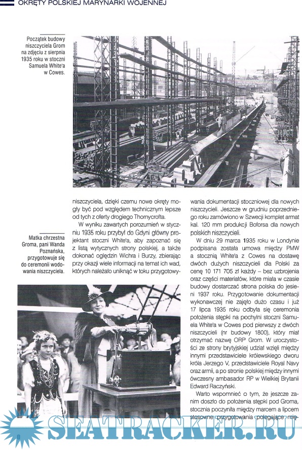 Zamowienie, projekt i budowa ORP Grom Chatrakterystyka techniczna Przedwojenna sluzba Groma i "plan Pekin" Dzialania Groma u boku Royal Navy Grom pod Narvikiem Grom odnaleziony Bibliografia wybrana Modele nisczyciela ORP Grom