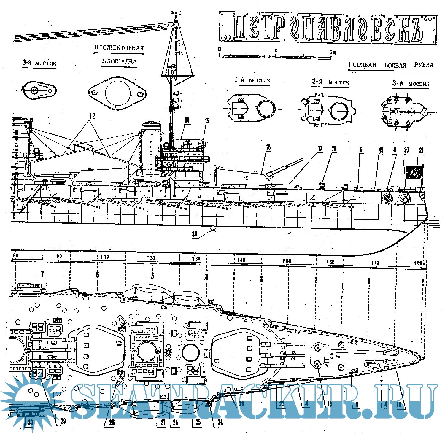 6 листов чертежей линейного корабля Петропавловск