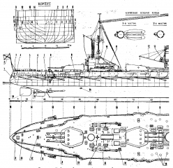 Описание: 6 листов чертежей линейного корабля Петропавловск