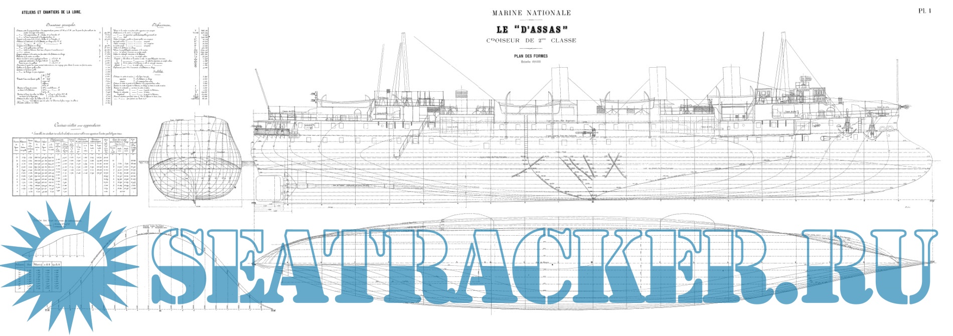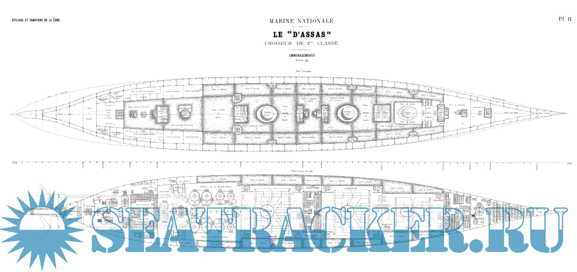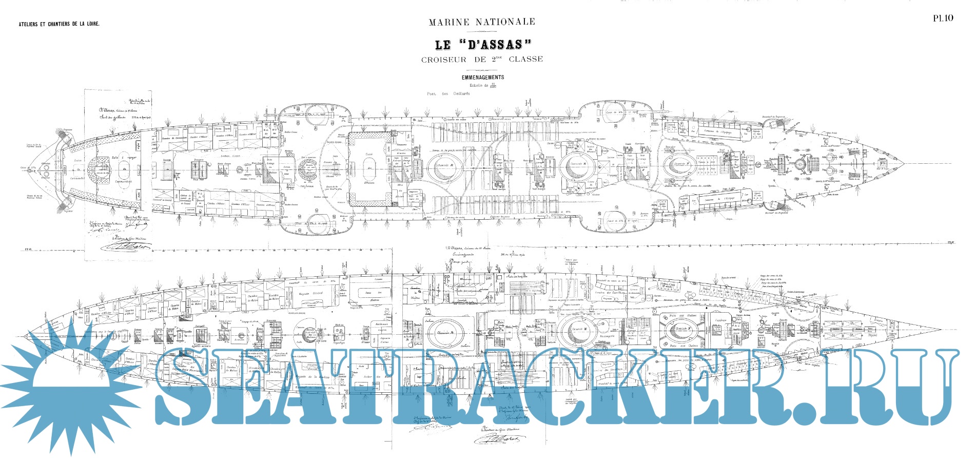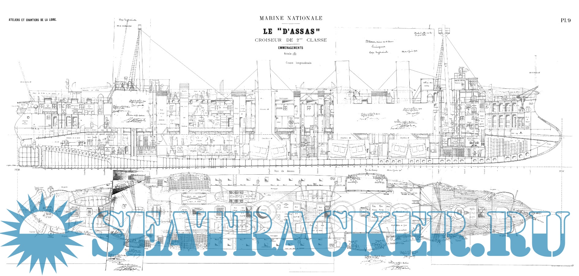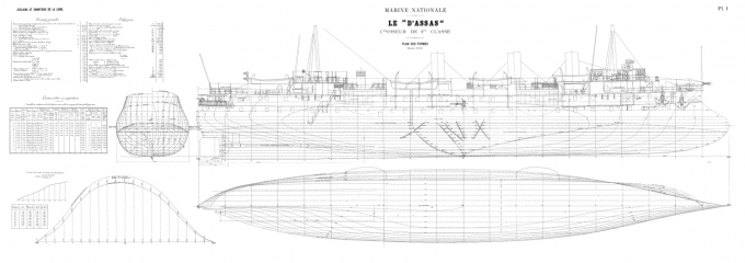 Архивные чертежи французского крейсера 2-го ранга LE D ASSAS 1896 год