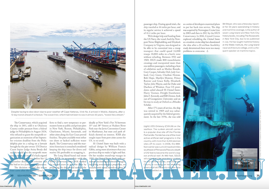 Year: 2025 Language: English Author: National Maritime Historical Society Genre: Historical, Magazine Publisher: The Lane Press USA Edition: Issue No.191 Summer 2025 Format: PDF Quality: Scanned pages Pages count: 84 Description: Discover Sea History! Our seafaring history comes alive in the pages of Sea History, the National Maritime Historical Society’s quarterly magazine. Sea History Magazine - the Art, Literature, Adventure, Lore and Learning of the Sea is published quarterly by the National Maritime Historical Society. Our seafaring history comes alive in the pages of Sea History, the National Maritime Historical Society’s quarterly magazine. The pre-eminent journal of advocacy and education in our field, Sea History covers the world of maritime museums, sail training, key events and people in our maritime past, and the stories of everyday sailors past and present, and marine archaeology, with a national focus and an international scope, as well as Others regular features. Issue No.191 Summer 2025