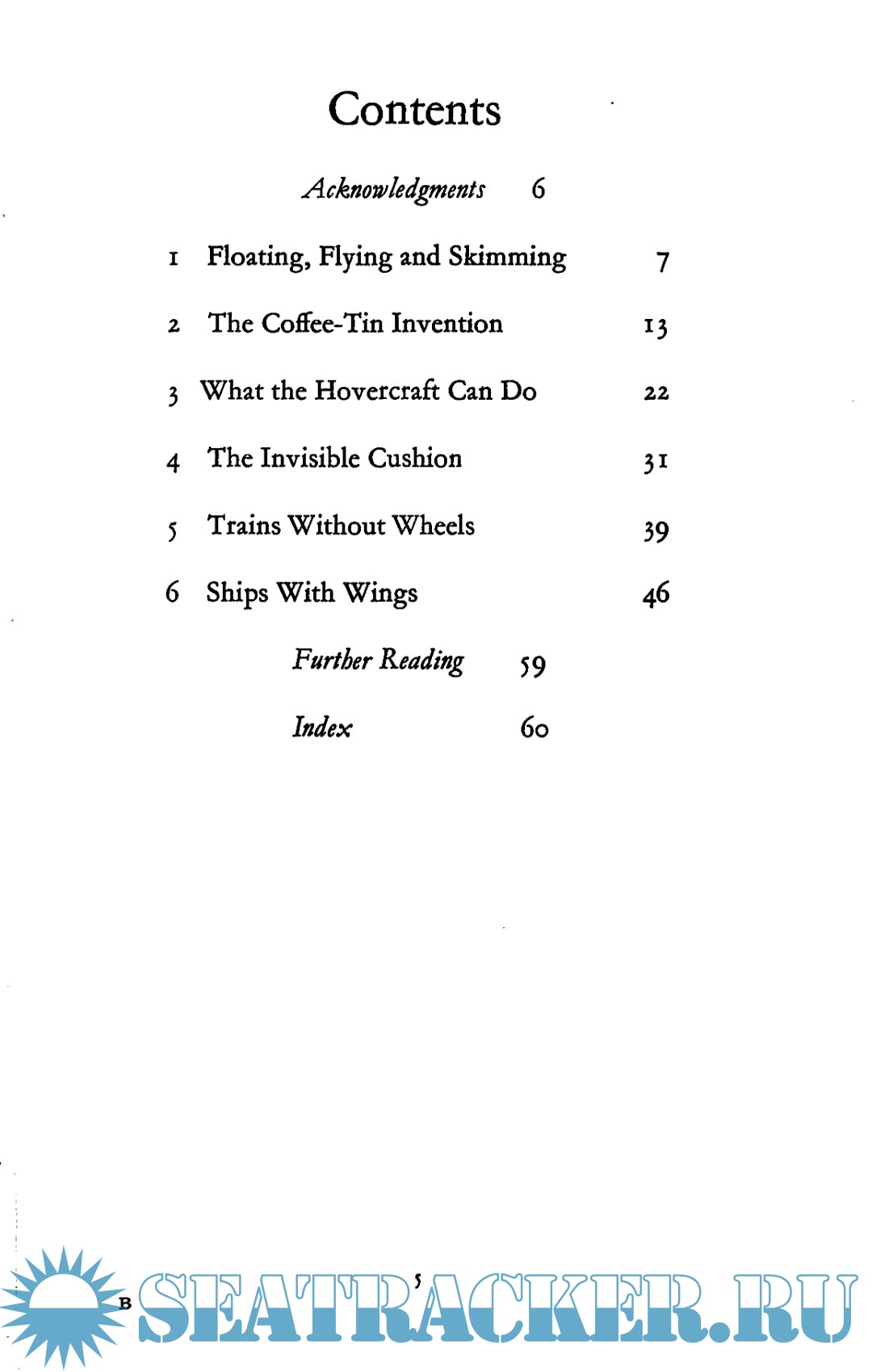 Description: Is it a ship or an aircraft? Strange new means of transport have sprung up in our time, but none stranger than hovercraft and hydrofoils. We are not even quite sure how to classify them-the air-cushion vehicle (as the hovercraft is called in technical language) flies above the water and the ground like a bird, but can't rise more than a few feet; the winged or legged boat-the hydrofoil-almost leaves the water, but cannot move without it. These surface-skimming craft (another technical term) have opened a new world of inventive imagination to our transport designers. We shall probably travel in air-cushion vehicles at high speed over land as we already do over the water; aero-trains, hovercars, giant ocean-going hydrofoil ships are in the offing, and air-cushion techniques have been ntroduced in medicine and industry. Oddly enough, even a combination of hovercraft and hydrofoil boat is being developed.